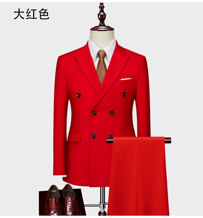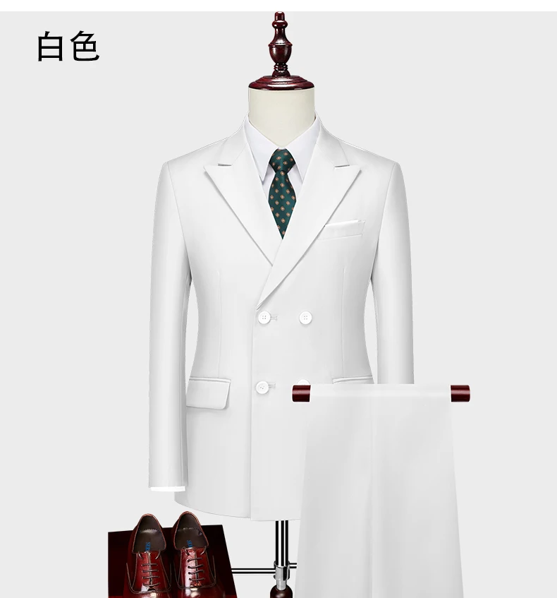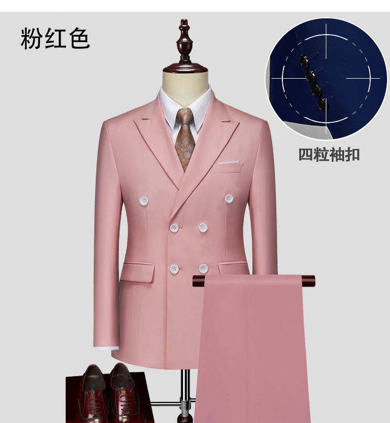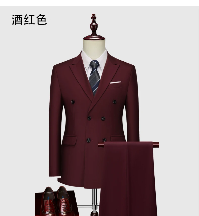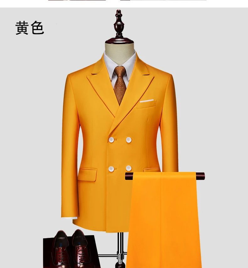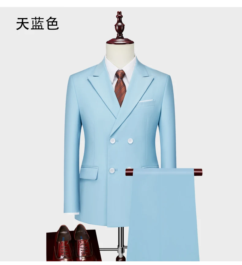 15Color New Boutique Fashion Solid Color Men’s Business Double Breasted Suit 2 Piece Groom Wedding Dress Party Suit Blazer Pants