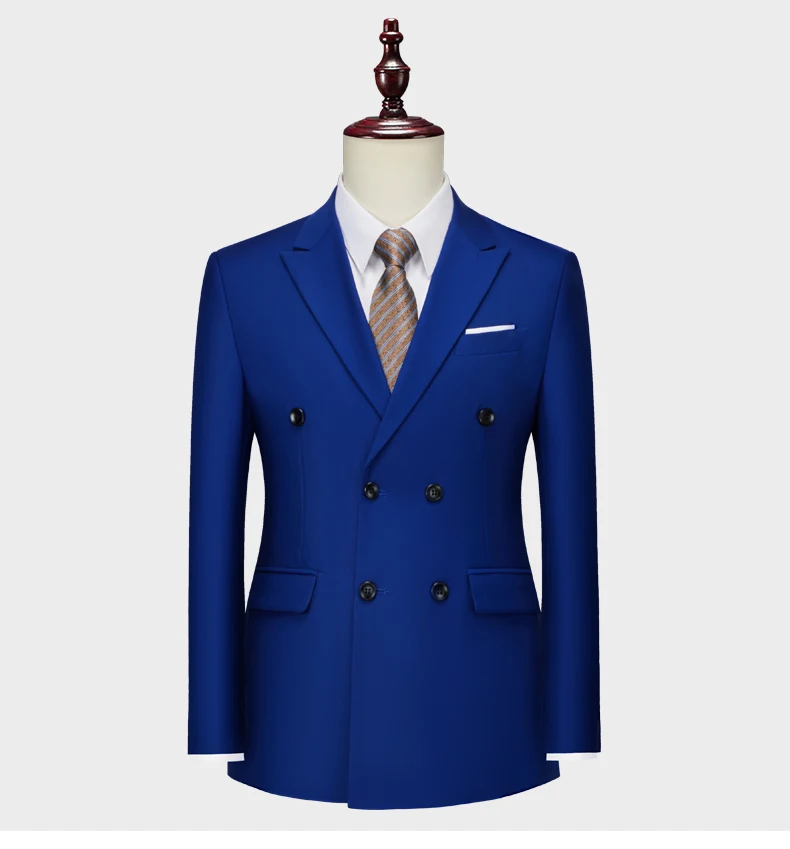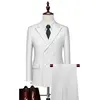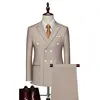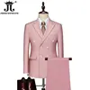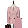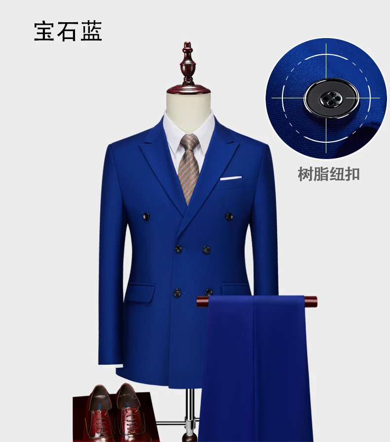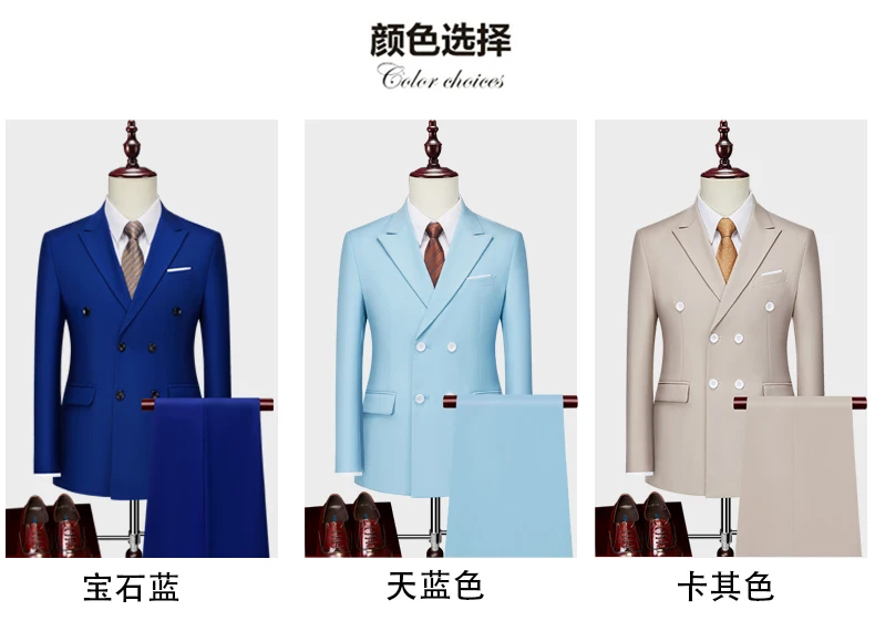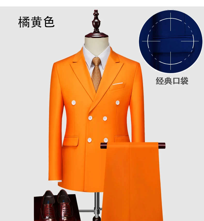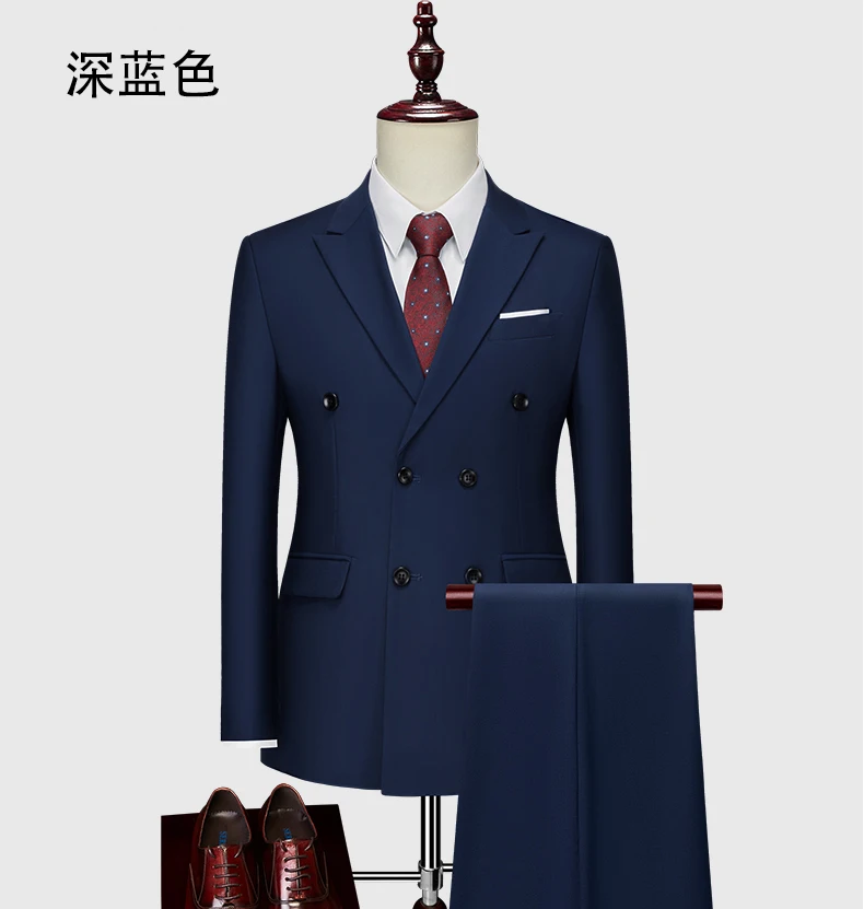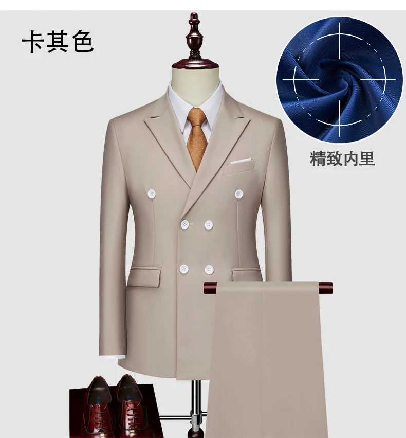 15Color New Boutique Fashion Solid Color Men’s Business Double Breasted Suit 2 Piece Groom Wedding Dress Party Suit Blazer Pants
