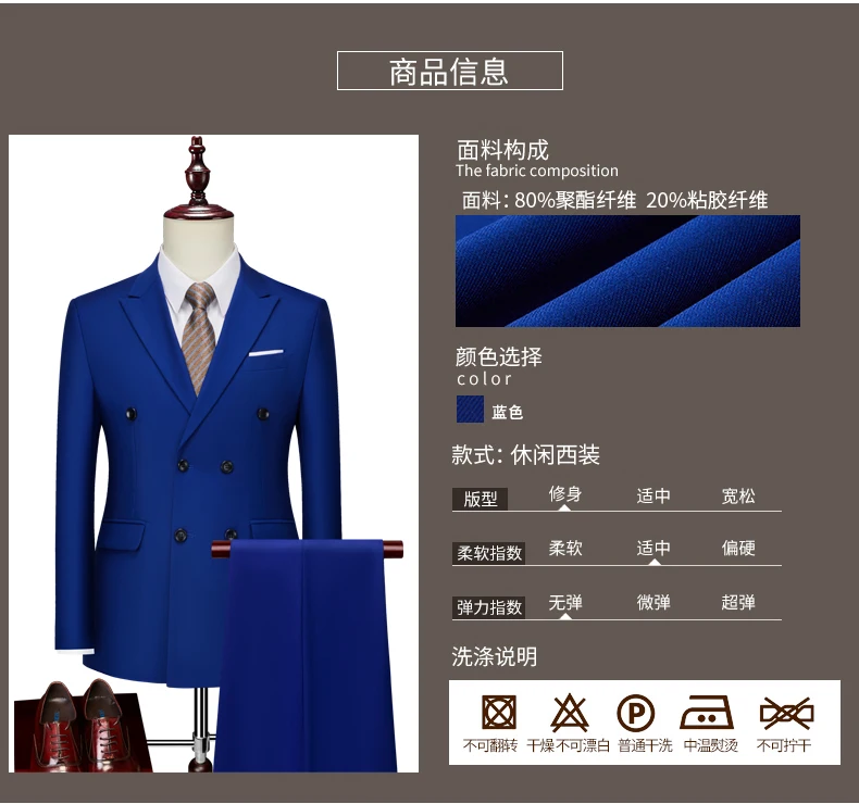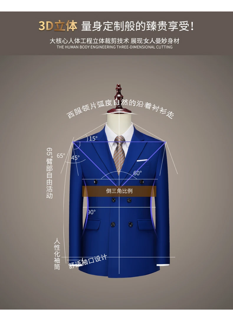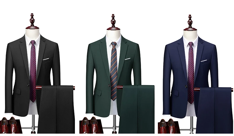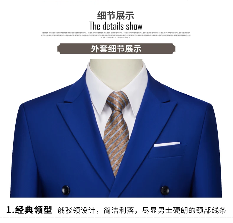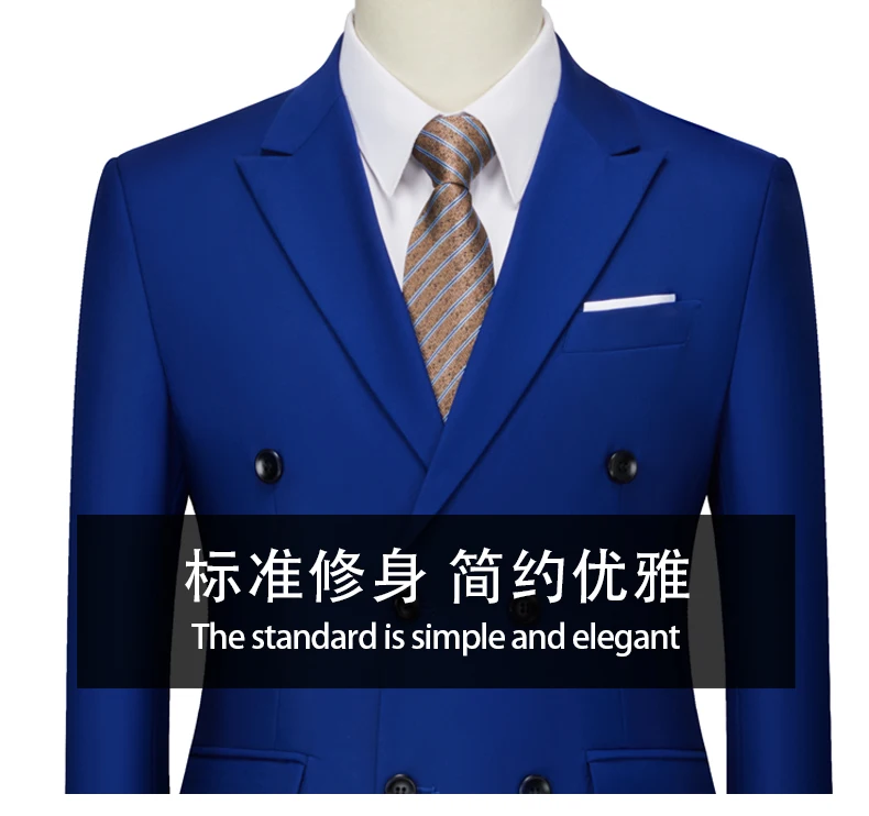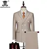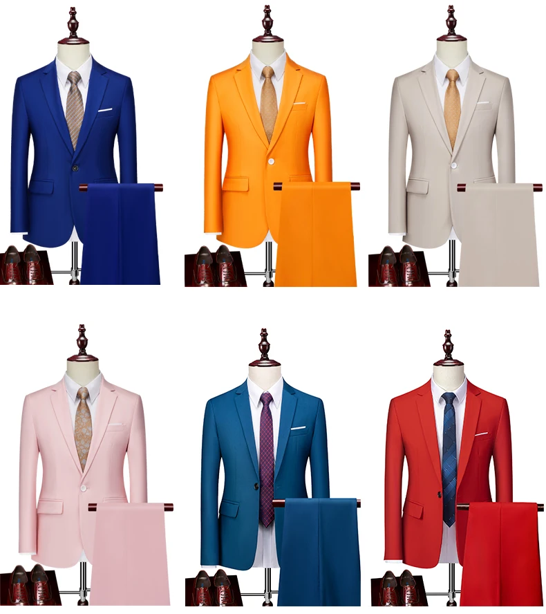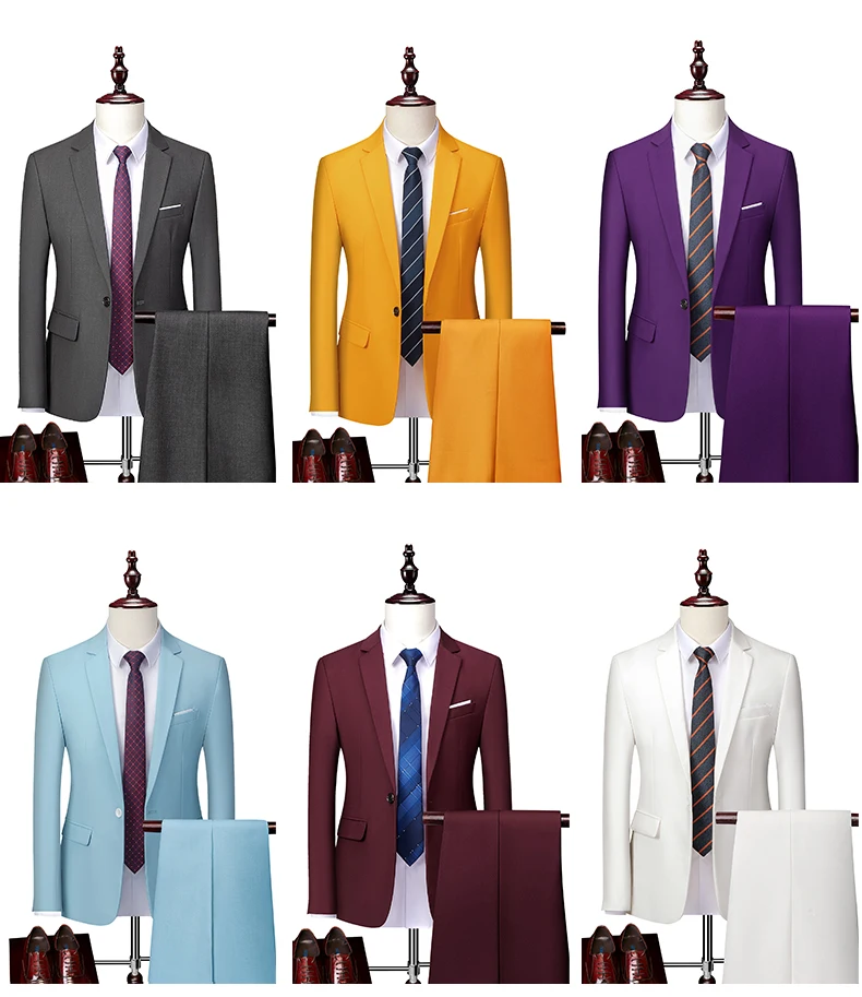 15Color New Boutique Fashion Solid Color Men’s Business Double Breasted Suit 2 Piece Groom Wedding Dress Party Suit Blazer Pants