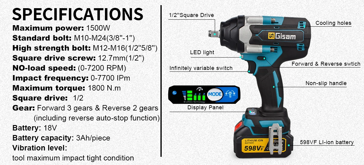 -1800 نيوتن متر عزم دوران عالي، مفتاح تغيير السرعة بدون خطوات.