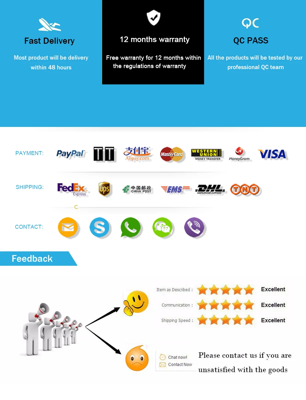 • ضمان استرداد الأموال: هل هناك شيء غير صحيح تمامًا؟ إذا لم تكن راضيًا تمامًا عن مشترياتك ، فيمكنك إرجاعها في غضون 15 يومًا لاسترداد الأموال بالكامل