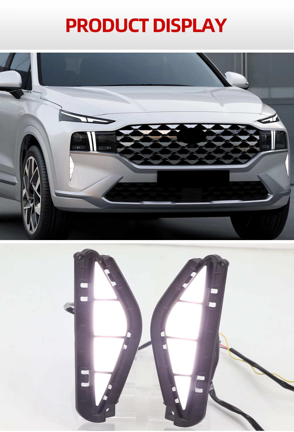 2 قطعة السيارات LED النهار تشغيل ضوء لشركة هيونداي سانتا في 2021 2022 DRL الديناميكي بدوره إشارة الضباب مصباح ضوء النهار الضباب أضواء