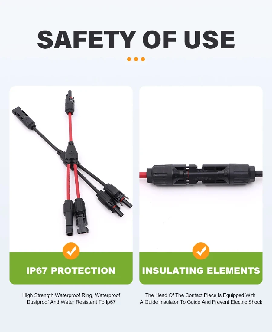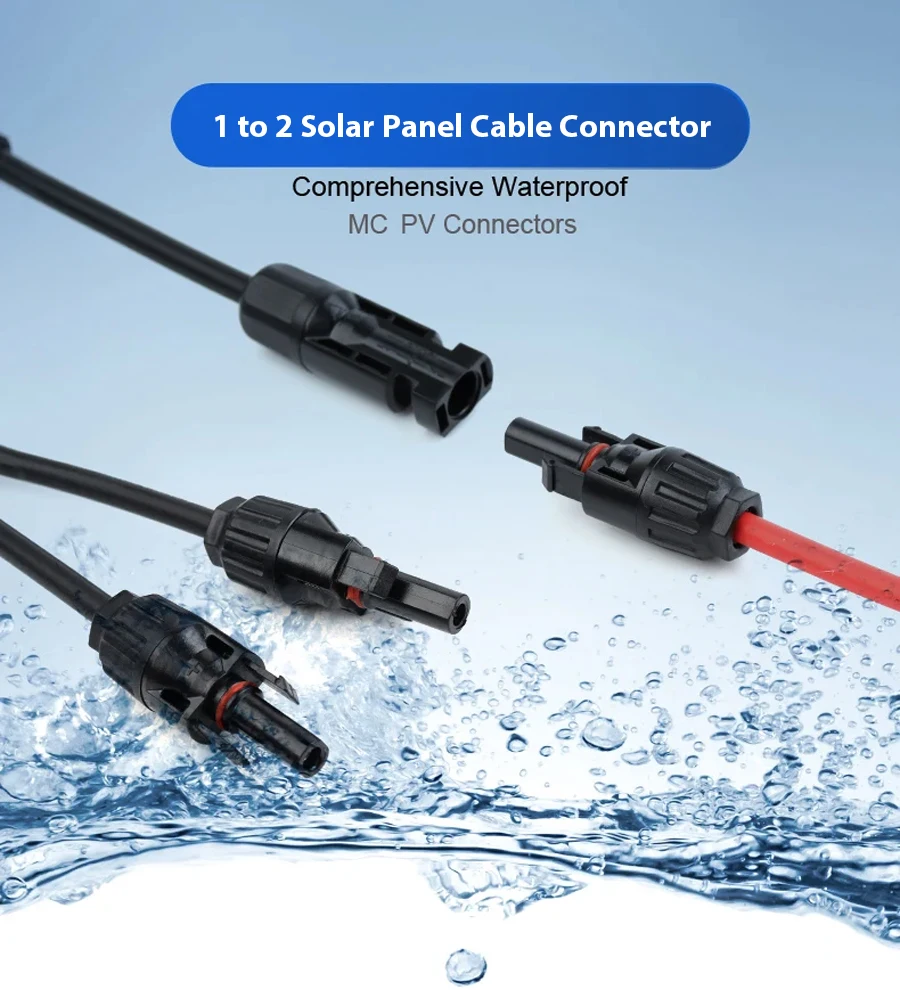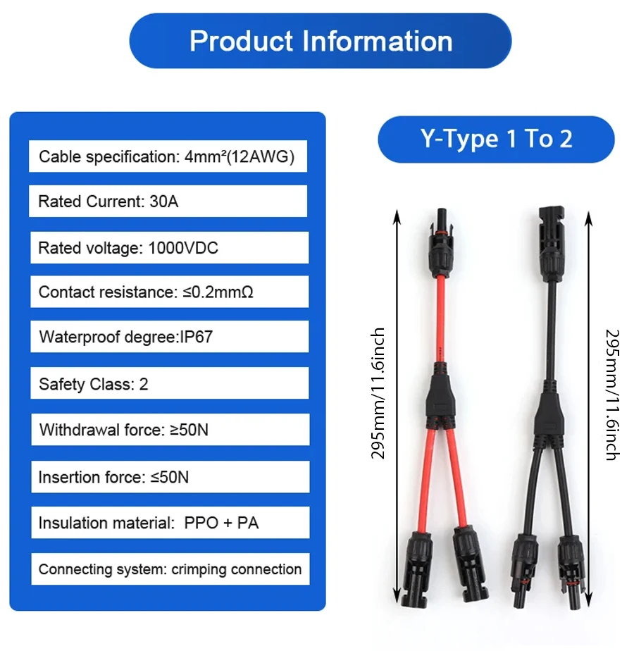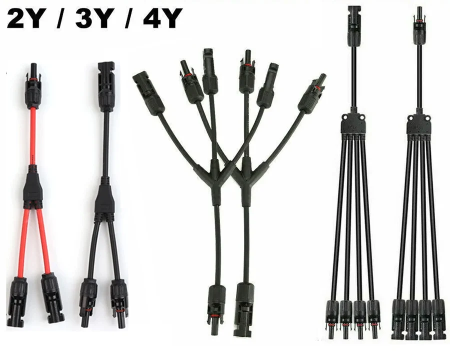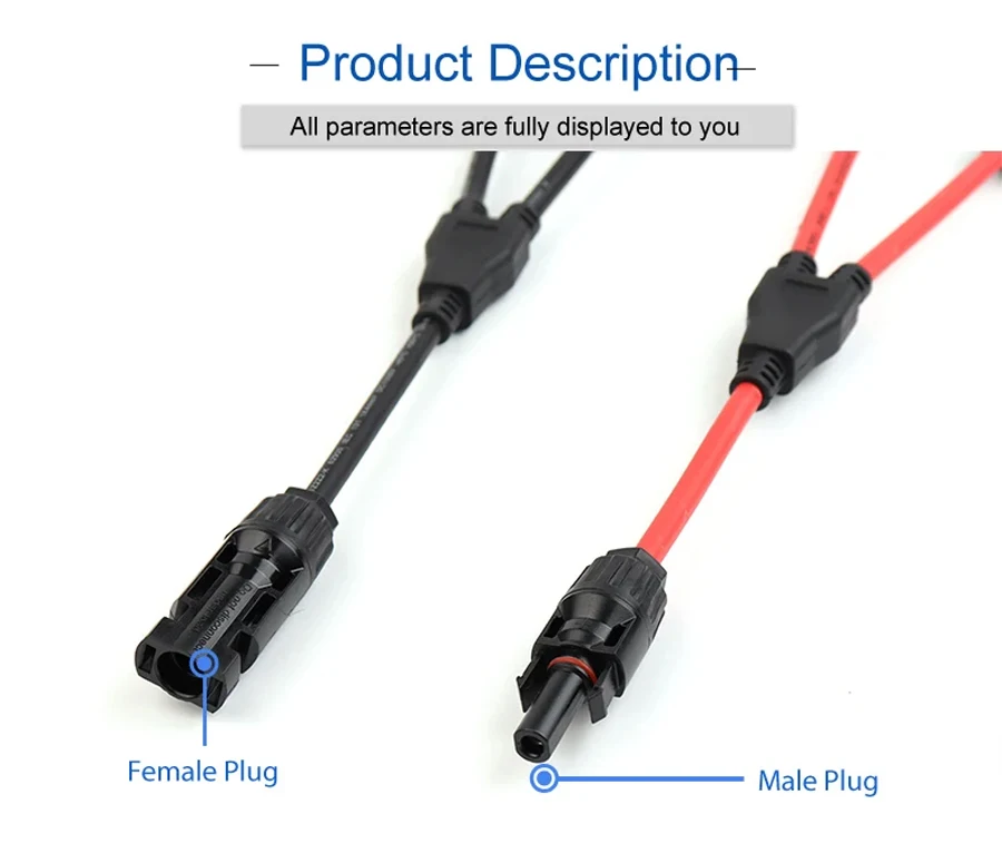 Power Solar Connectors 30A Y-Branch Cable, Solar Cable Parallel Adaptor in Pair for Solar Panel 1*M/FF+1*F/MM black red