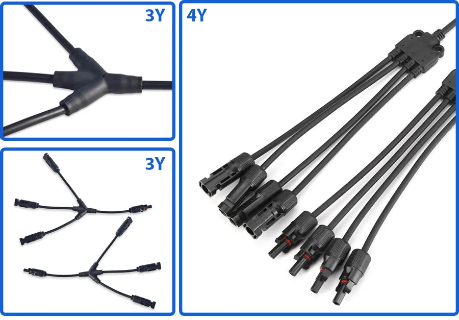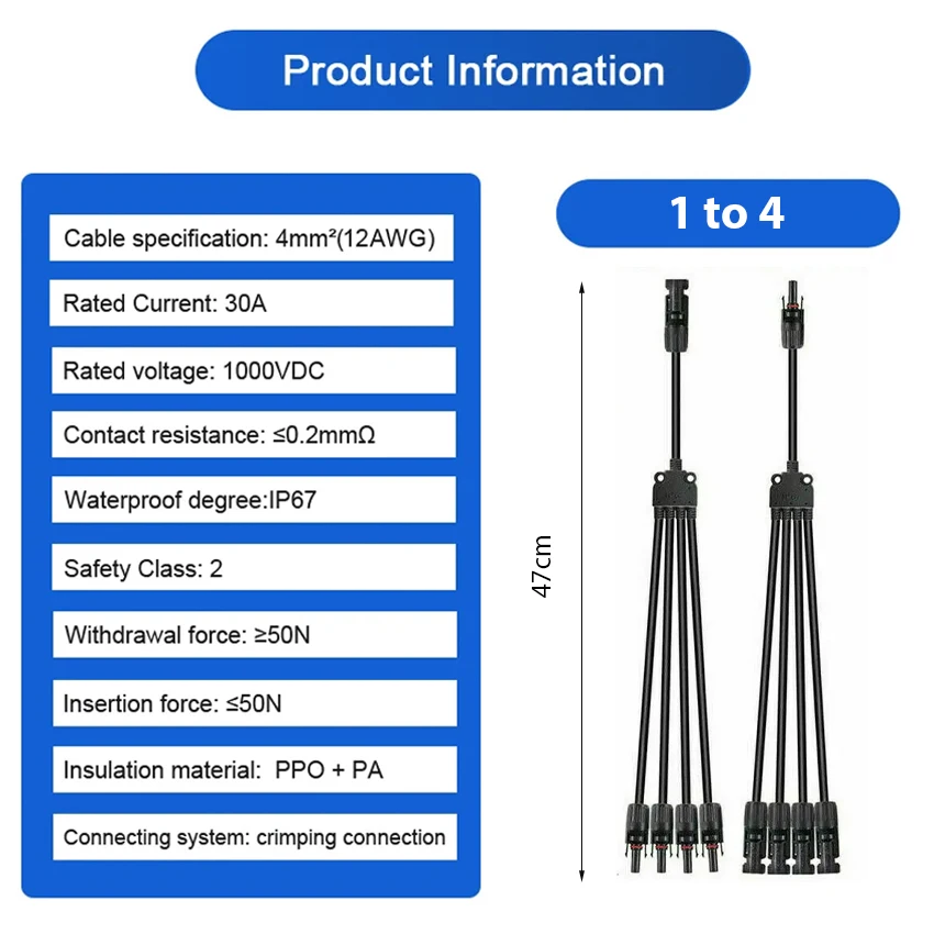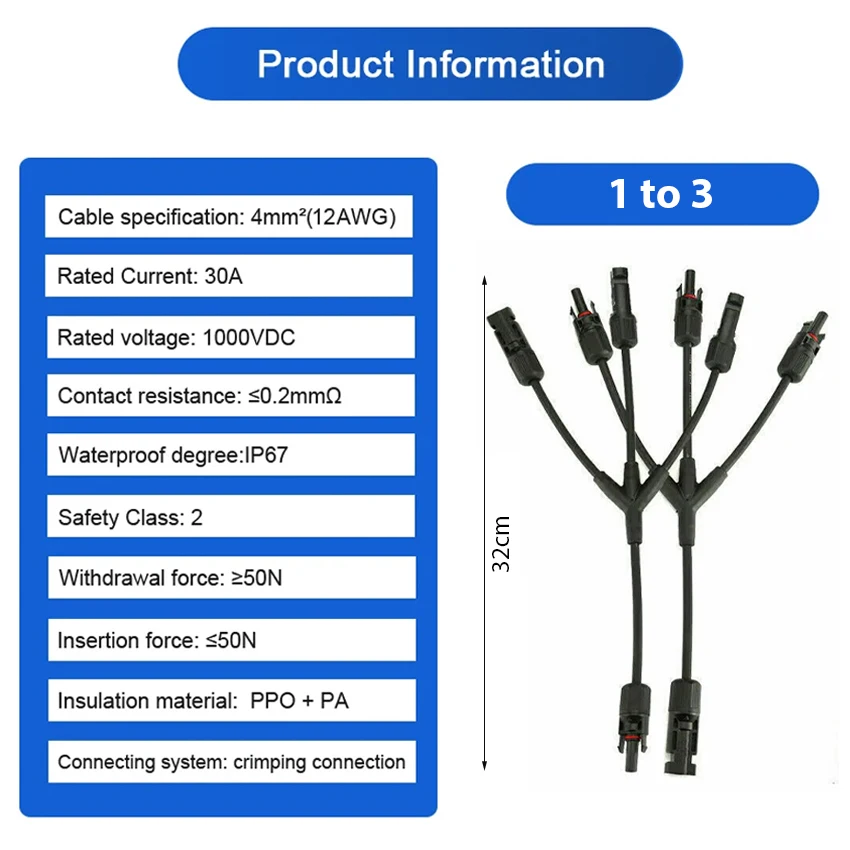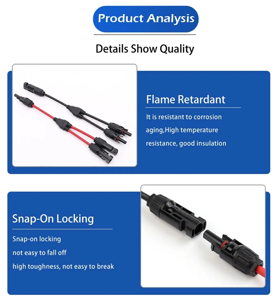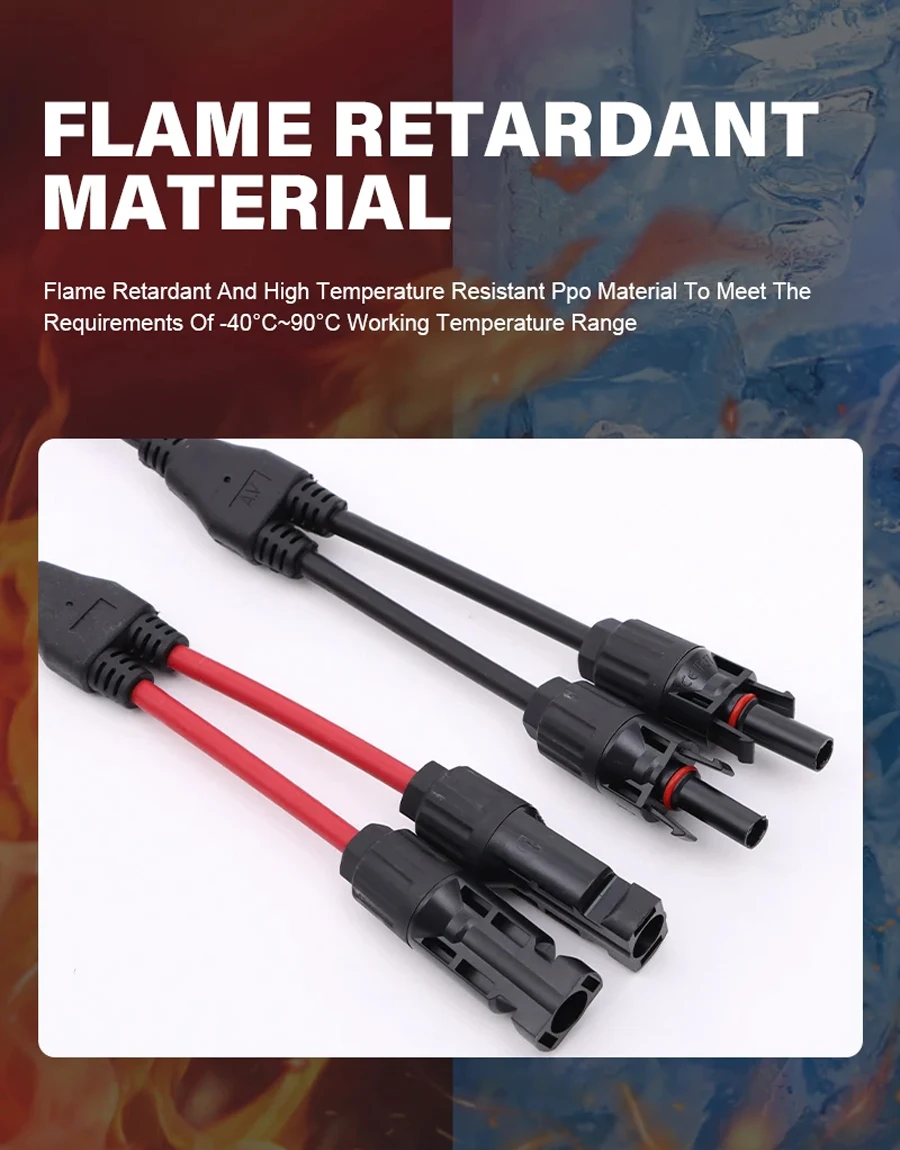 Power Solar Connectors 30A Y-Branch Cable, Solar Cable Parallel Adaptor in Pair for Solar Panel 1*M/FF+1*F/MM black red