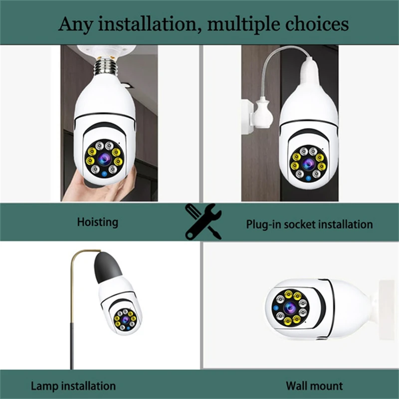 2/5 قطعة E27 لمبة كاميرا مراقبة wifi للرؤية الليلية كامل اللون التلقائي الإنسان تتبع 4x التكبير الرقمي شاشة أمن الفيديو
