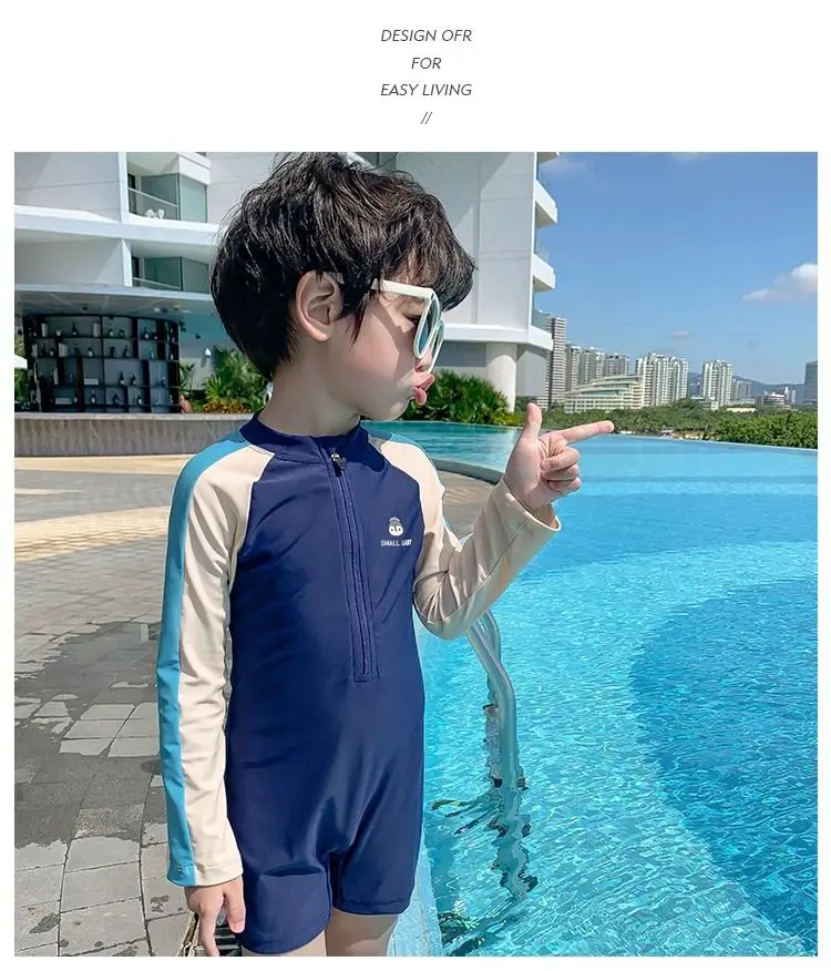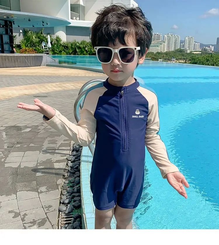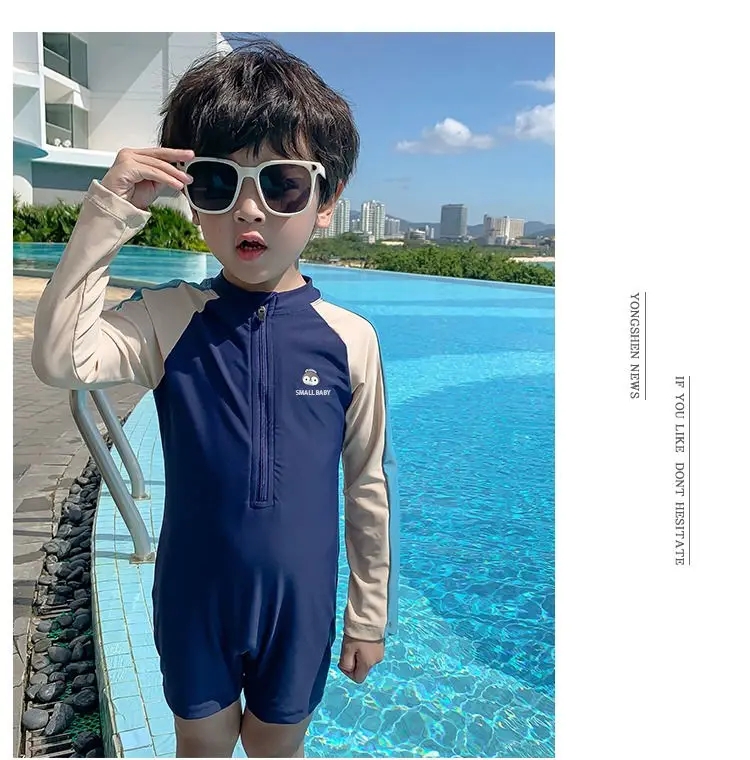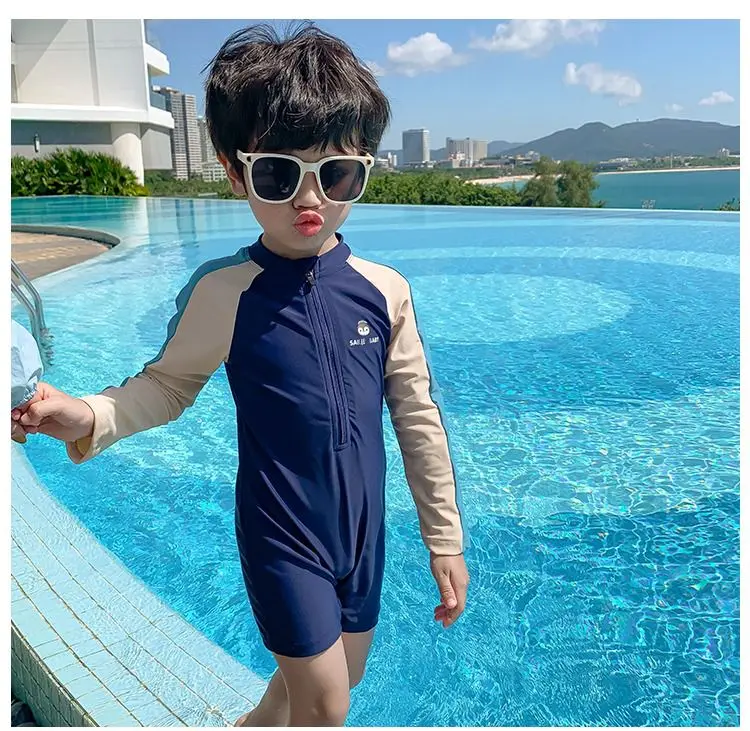 2-9 سنوات الأطفال ملابس السباحة الربيع الساخن الأولاد قطعة واحدة ملابس السباحة 2023 عطلة جديدة طويلة الأكمام التجفيف السريع قطعة واحدة ملابس السباحة
