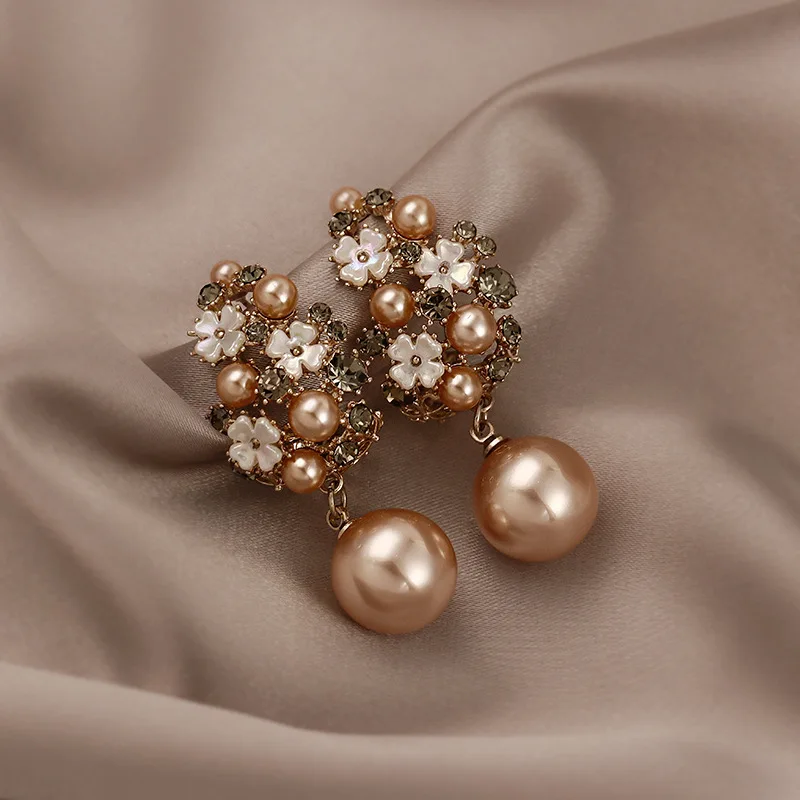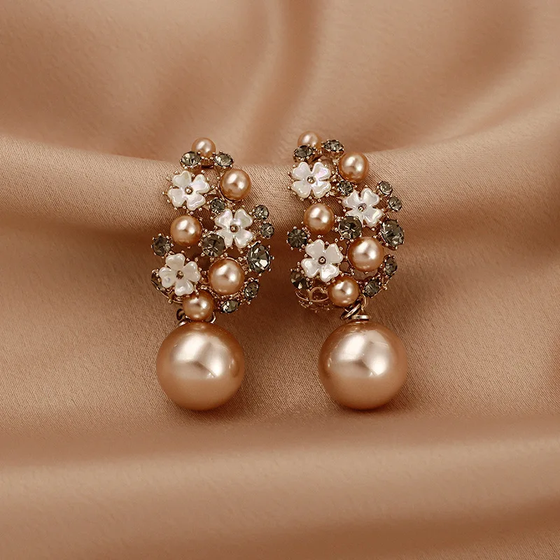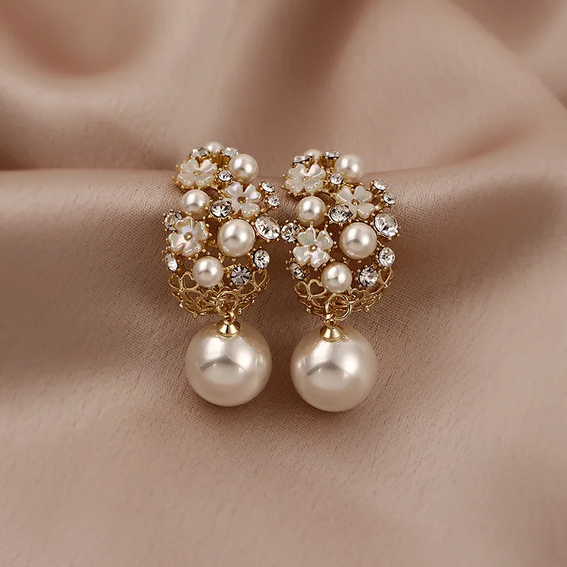 2021 جديد وصول مقلد بيرل Vintage هندسية بسيطة مايكرو مطعمة الجوف زهرة اللؤلؤ المرأة استرخى أقراط