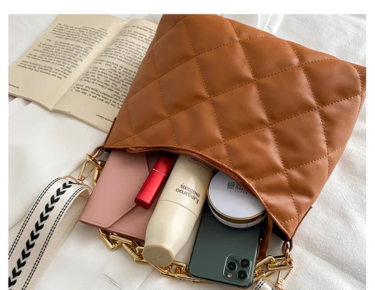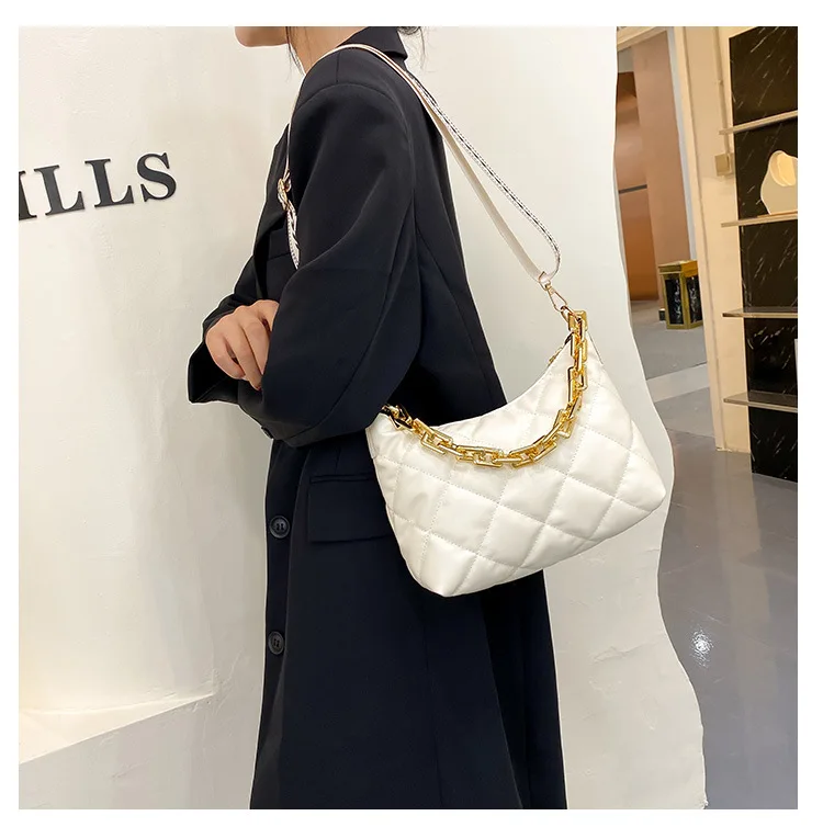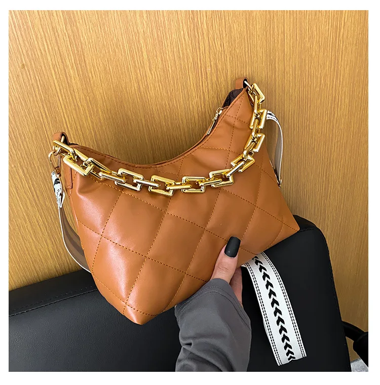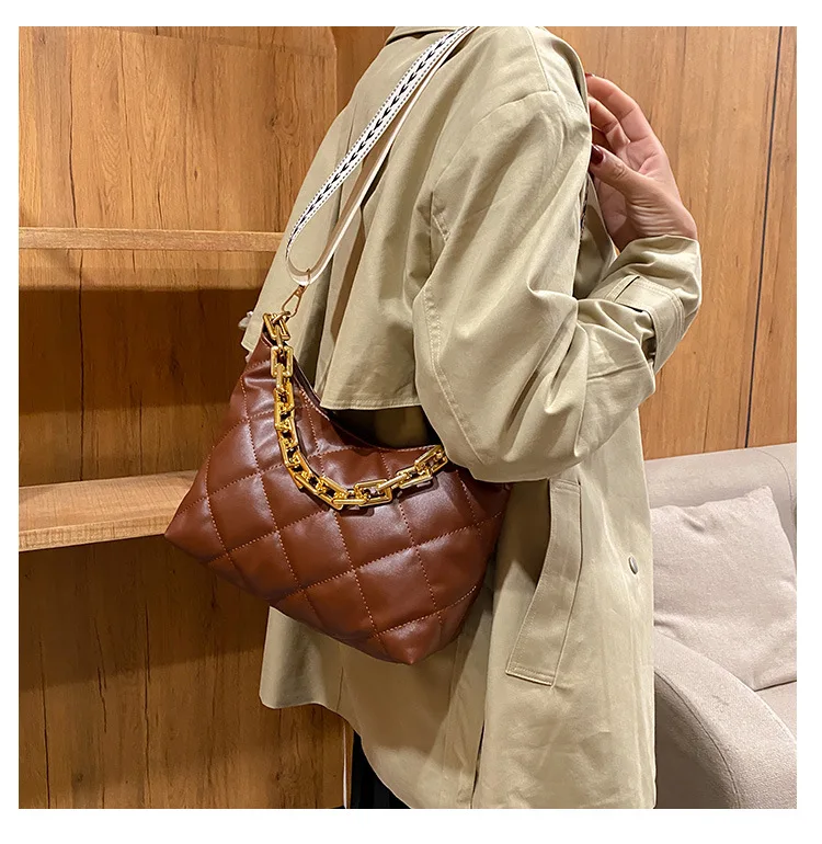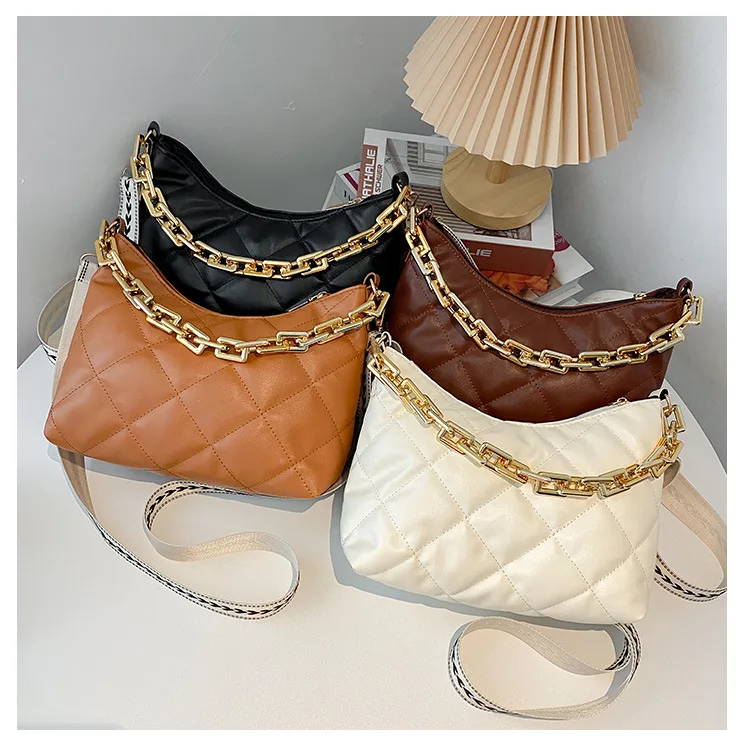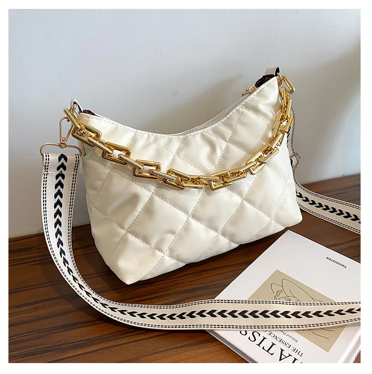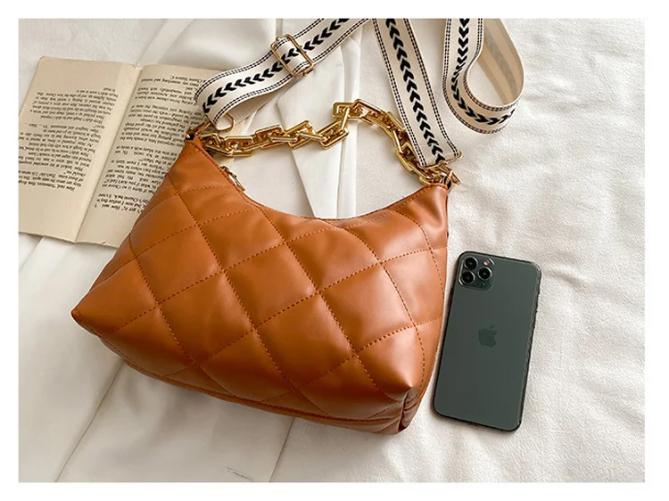 2021 موضة سلسلة سميكة حقائب كروسبودي للنساء واسعة حزام حقيبة كتف منقوشة بولي Pu حقائب يد جلدية المرأة حقيبة ساع