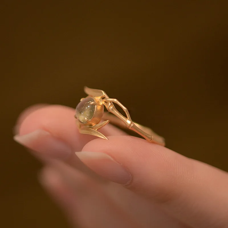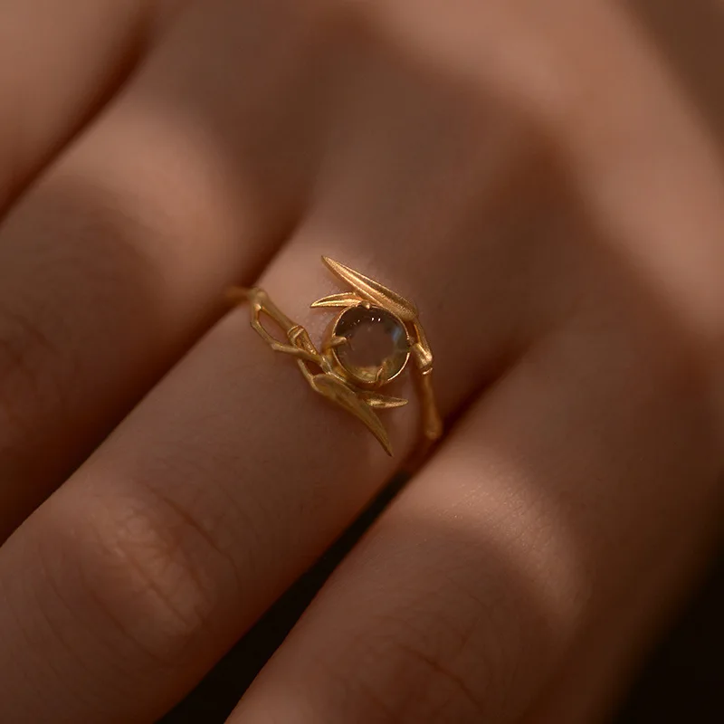 2022 تصميم جديد Moonstone الخيزران شكل الذهب اللون قابل للتعديل خواتم للنساء مجوهرات الأزياء الكورية حفلة إكسسوار فاخر هدية