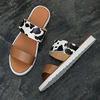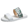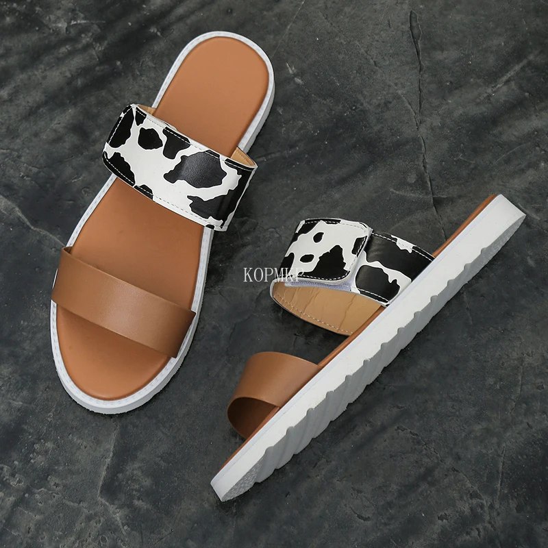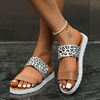 2022 الصيف شقة كعب سميك النعال مثير ليوبارد طباعة امرأة أصابع مستديرة فستان أحذية الحفلات صنادل أرضية صنادل للنساء