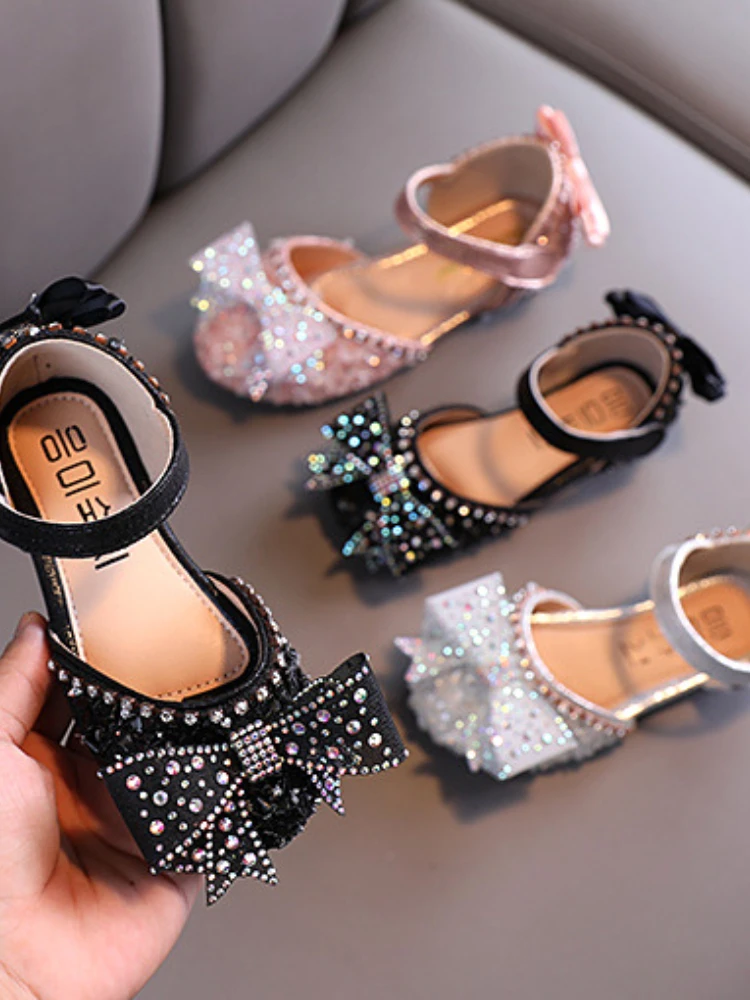 2022 جديد أحذية الفتيات الاطفال أداء الأحذية الترتر حجر الراين الأميرة مع فراشة عقدة حذاء مسطح الطلاب الرقص الصنادل