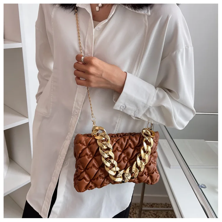 جديد مطوي بولي Leather حقائب جلدية Crossbody للنساء موضة سلسلة حزام حقيبة كتف مصمم حقائب اليد والمحافظ