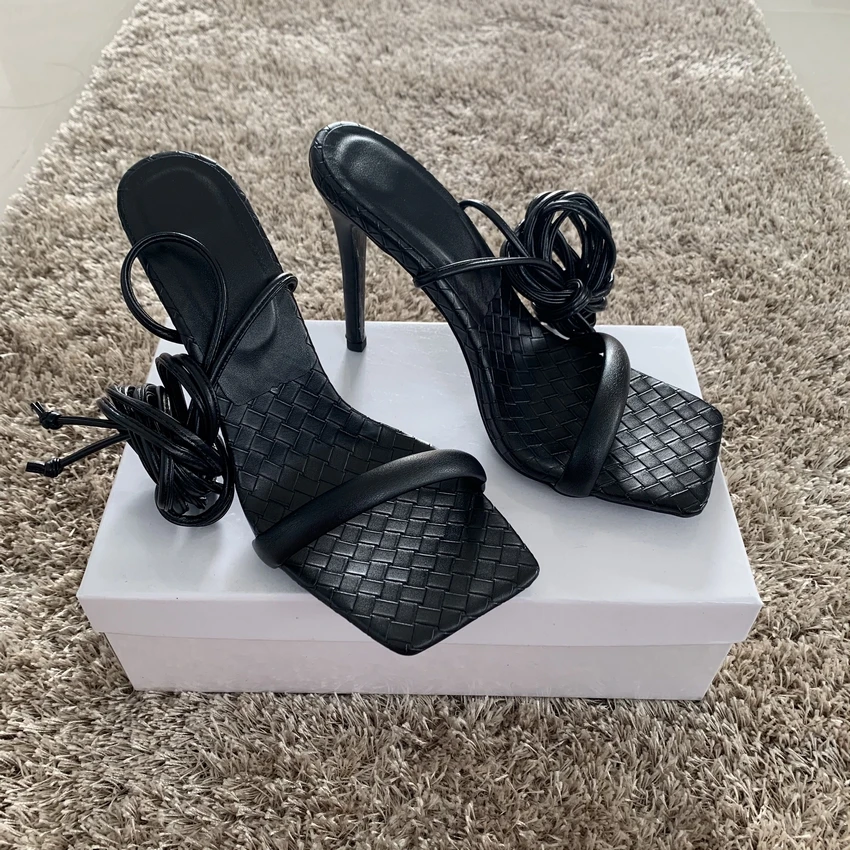 2023 جديد الأبيض الدانتيل متابعة منصة الصنادل النساء الصيف موضة ساحة تو الكاحل حزام غريبة الكعوب مضخات السيدات أحذية حجم 35-43
