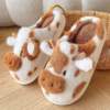 2024 Cartoon New Winter Unisex Cartoon Cow Warm Plush Slippers Couple’s Indoor Non-slip House Mule Men And Women Toe Wrap Home C