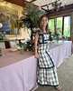 2024 Fashion Plaid Flying Sleeve Dress For Ladies Elegant Square Neck Sleeveless High-waisted Dresses Women Vintage Street Robes