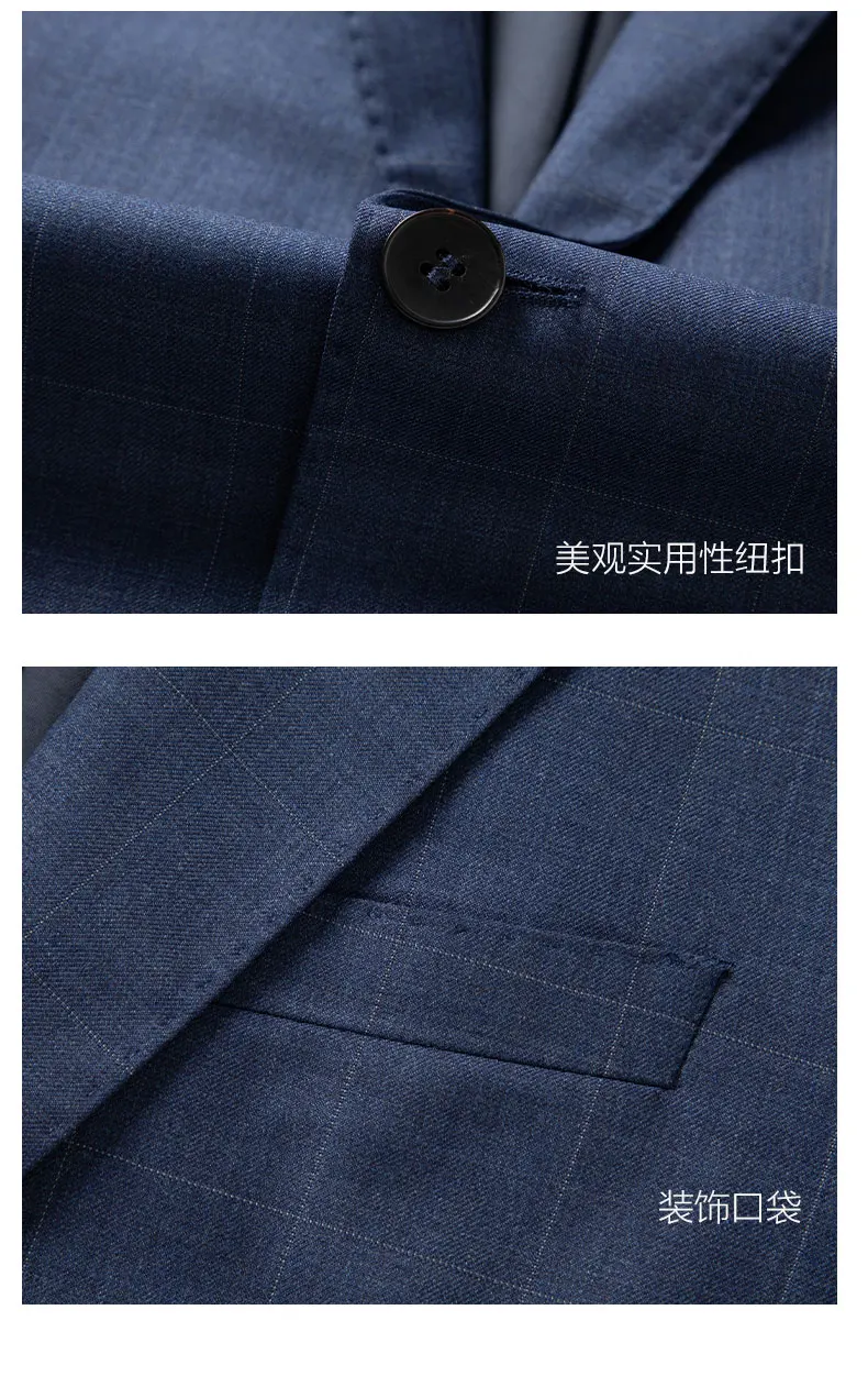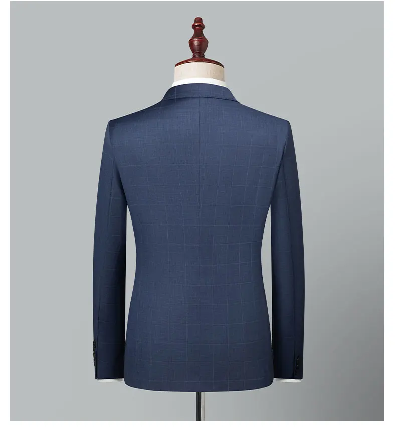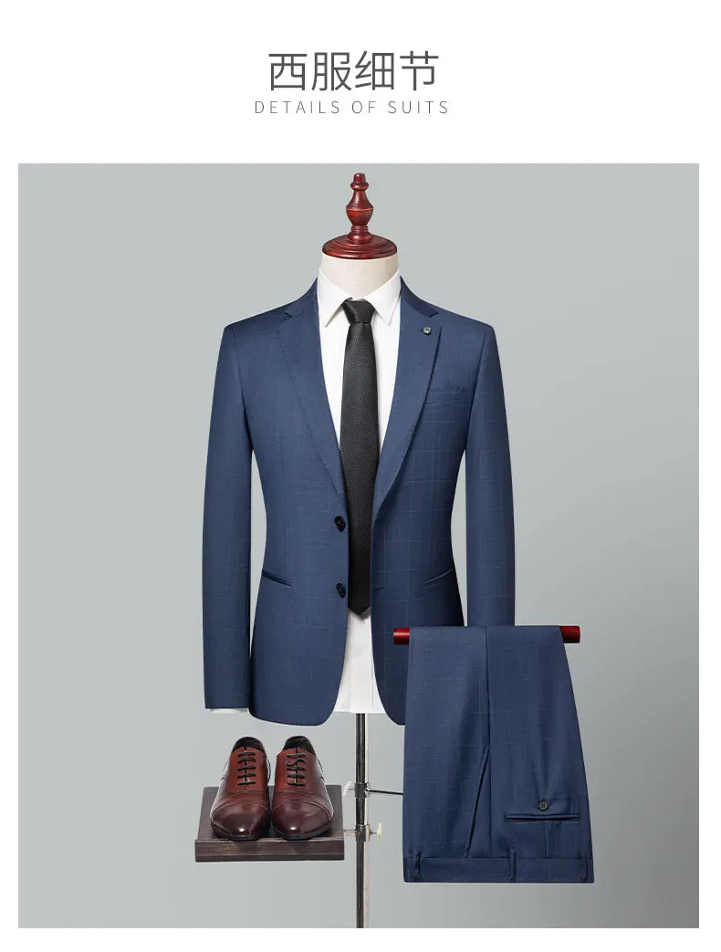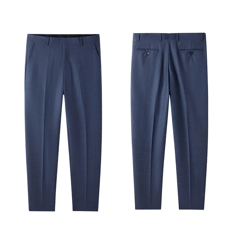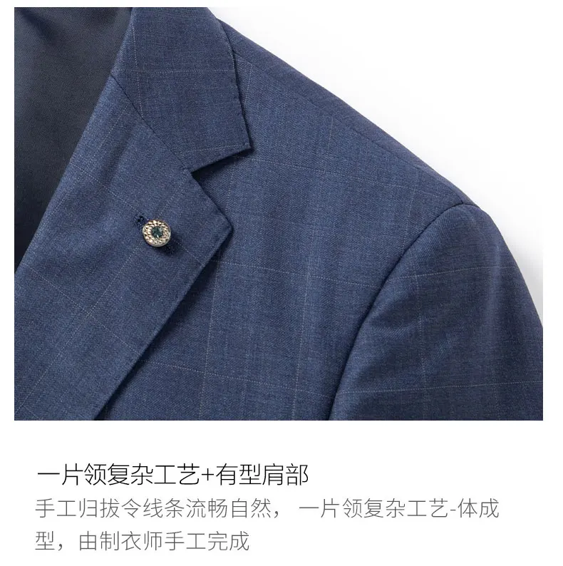 2024 High-quality Men’s New Sheepwool Suit (suit + Trousers) Blue Gray Plaid Wedding Dress Business Casual Fashion Two-piece Set