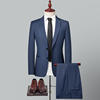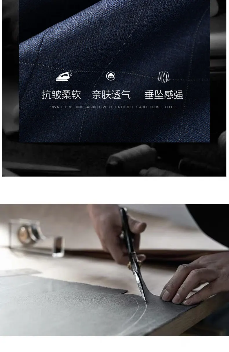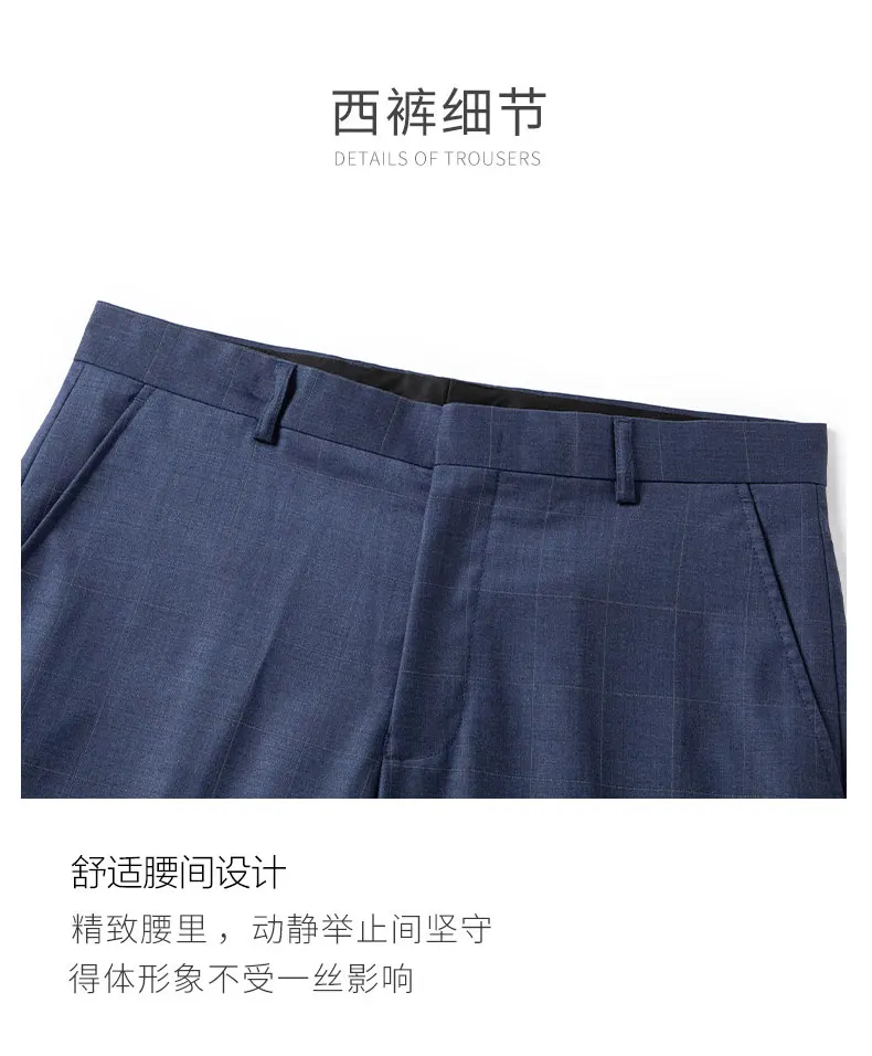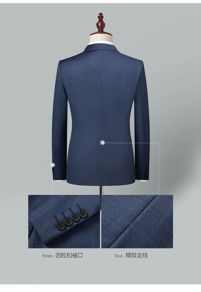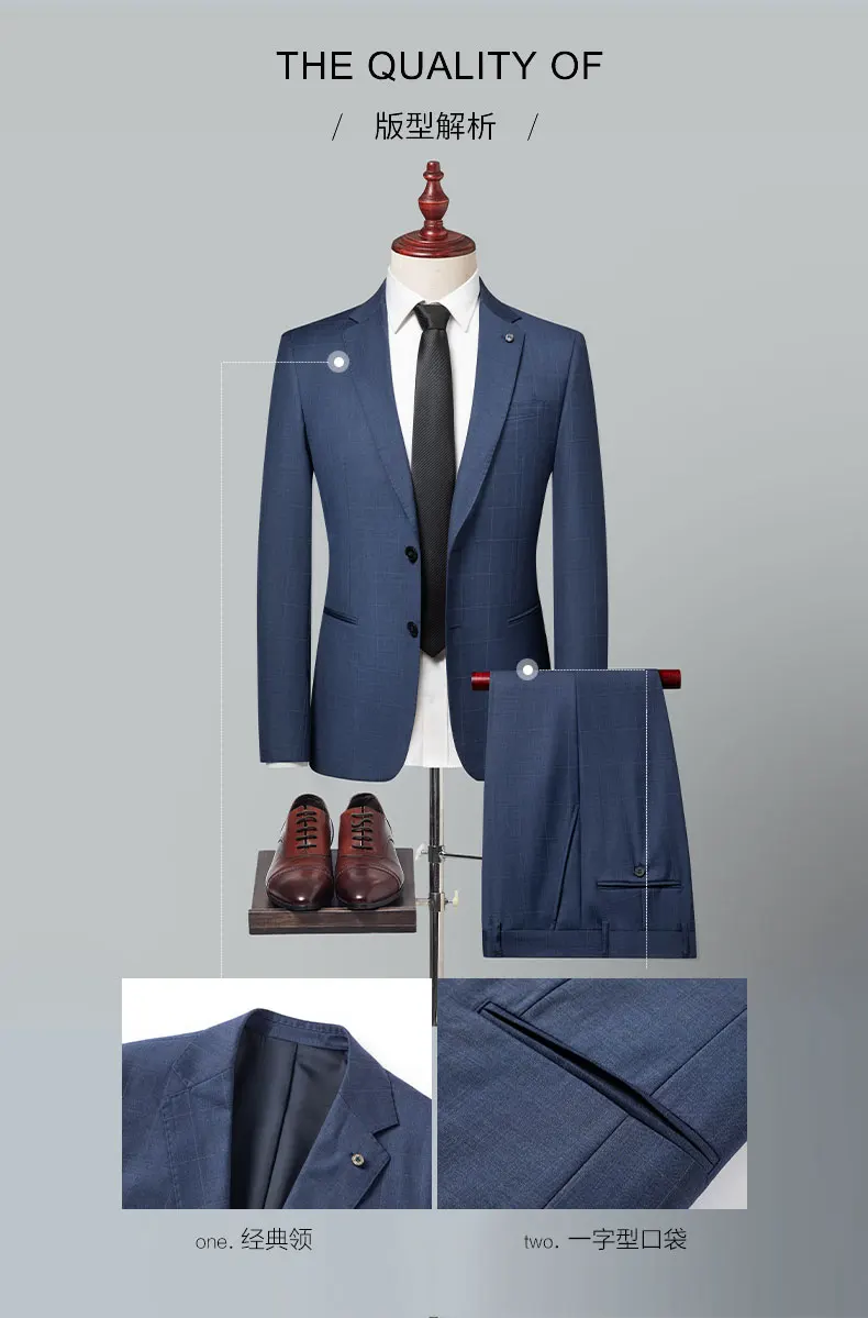 2024 High-quality Men’s New Sheepwool Suit (suit + Trousers) Blue Gray Plaid Wedding Dress Business Casual Fashion Two-piece Set