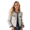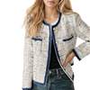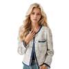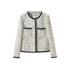 2024 new mixed color sheep wool coarse tweed small fragrant short jacket denim patchwork edge temperament jacket jacket