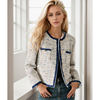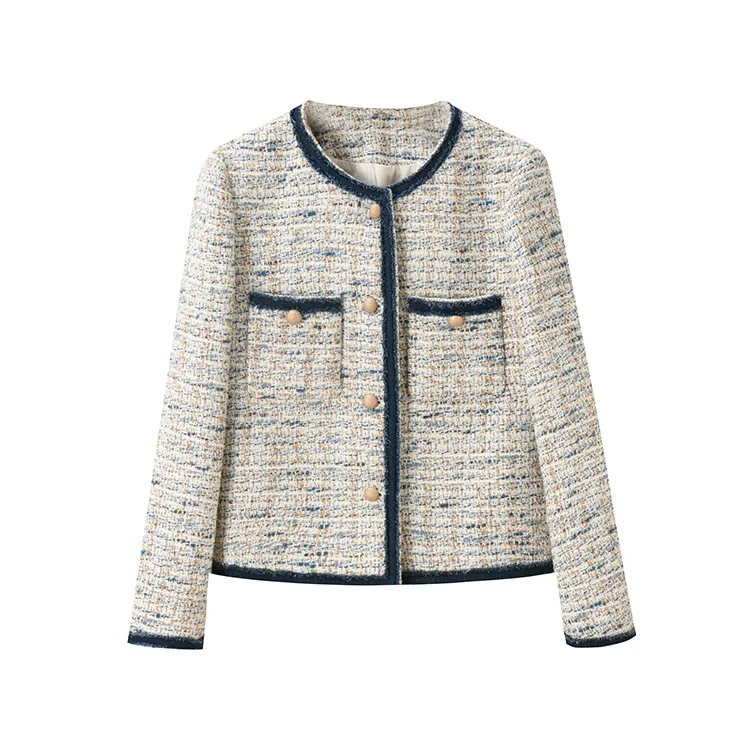 2024 new mixed color sheep wool coarse tweed small fragrant short jacket denim patchwork edge temperament jacket jacket