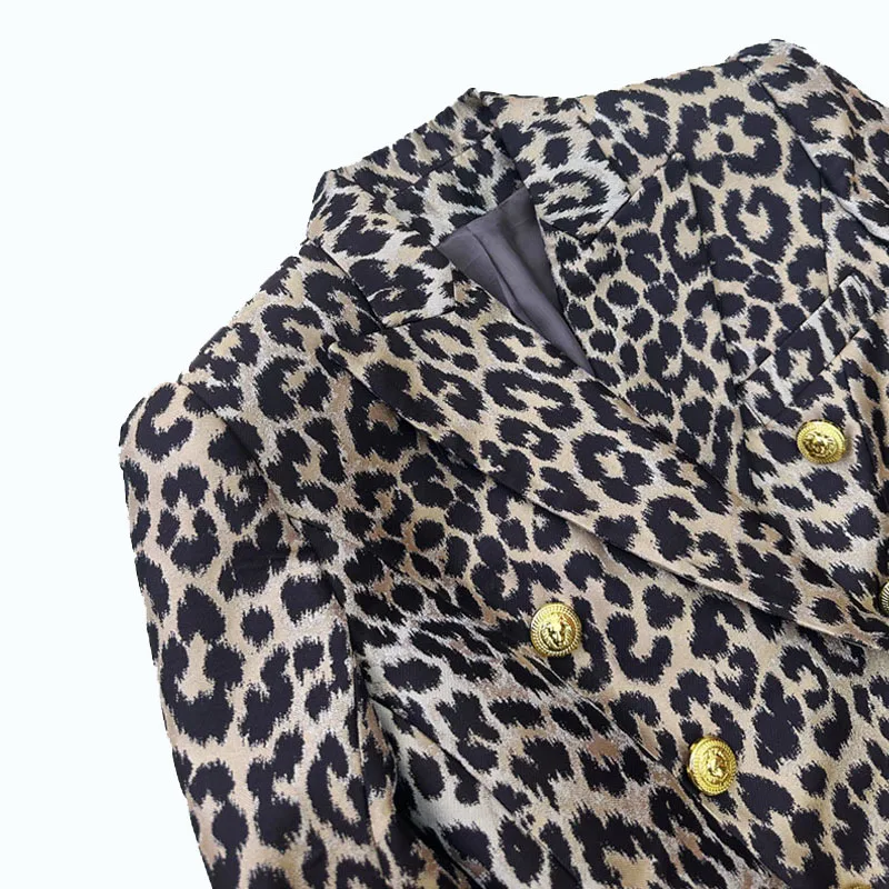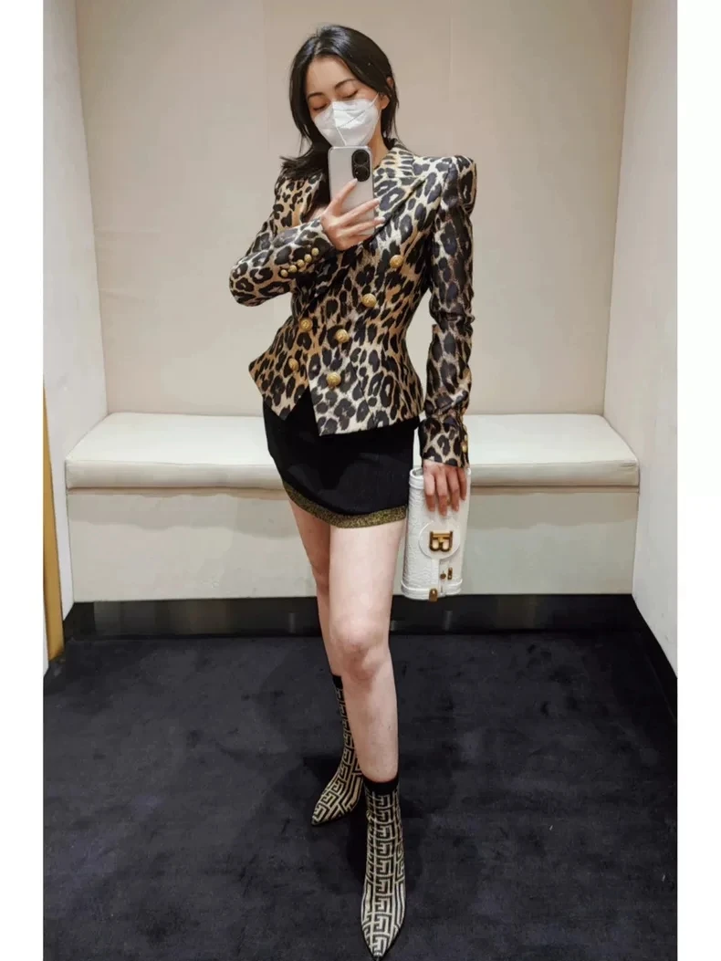 2024 New Women’s Classic Full Leopard Pattern Fashion Sports Jacket Double breasted Long sleeved Jacket Women’s Outcoat Jacket