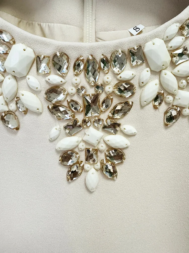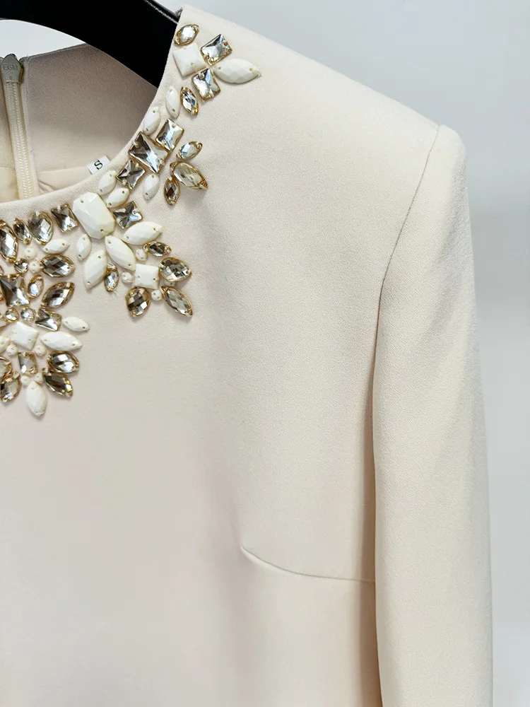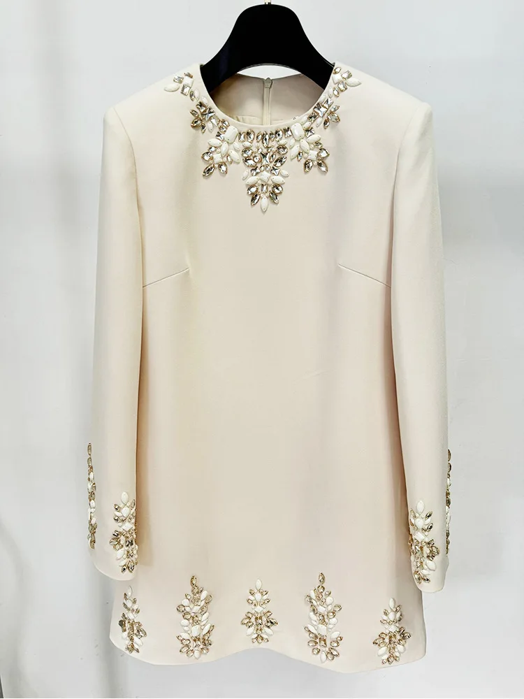 2024 Stylish Heavy Industry Nail Bead Diamond Set Long Sleeve Dress