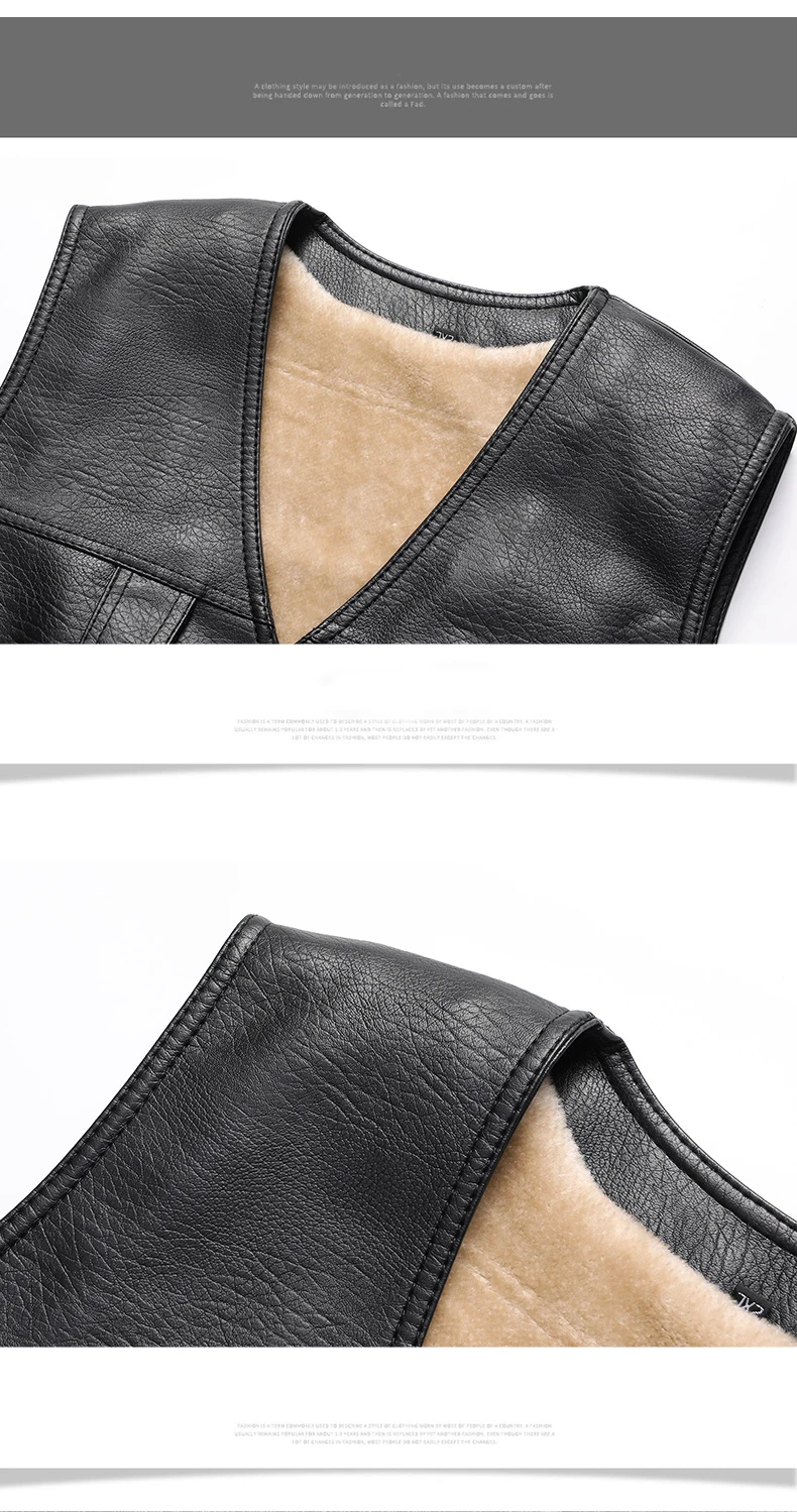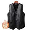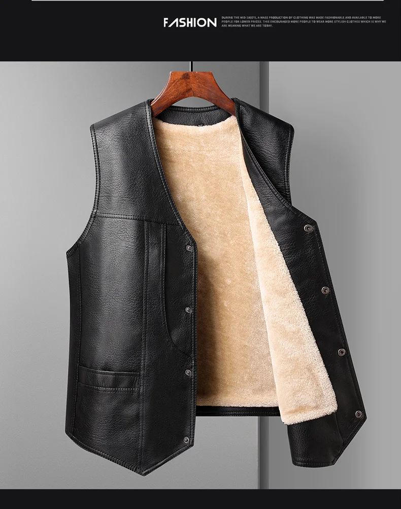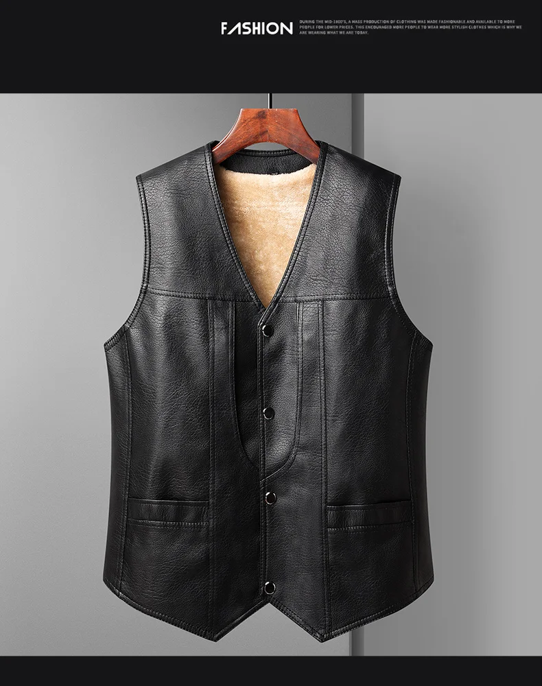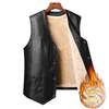 2024 Winter Men Thick Warm Fleece Leather Vest Coat Male V-Neck Single Breasted Vest Casual Male Clothing Outerwear