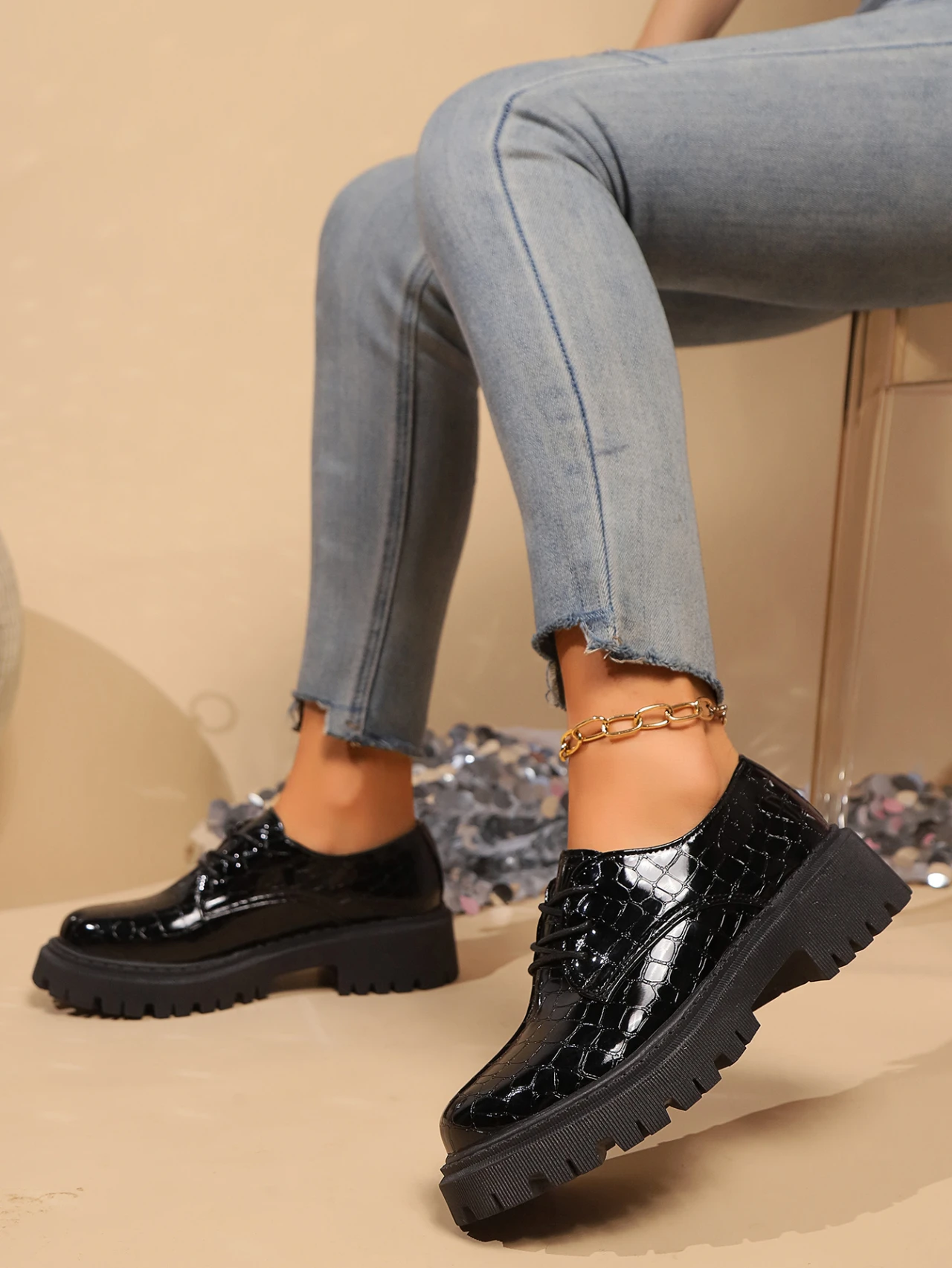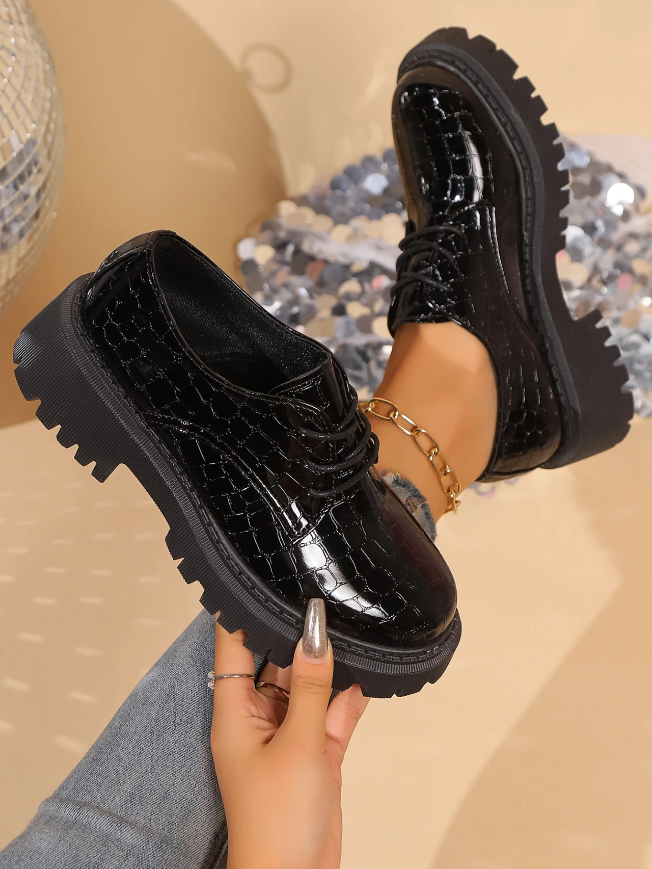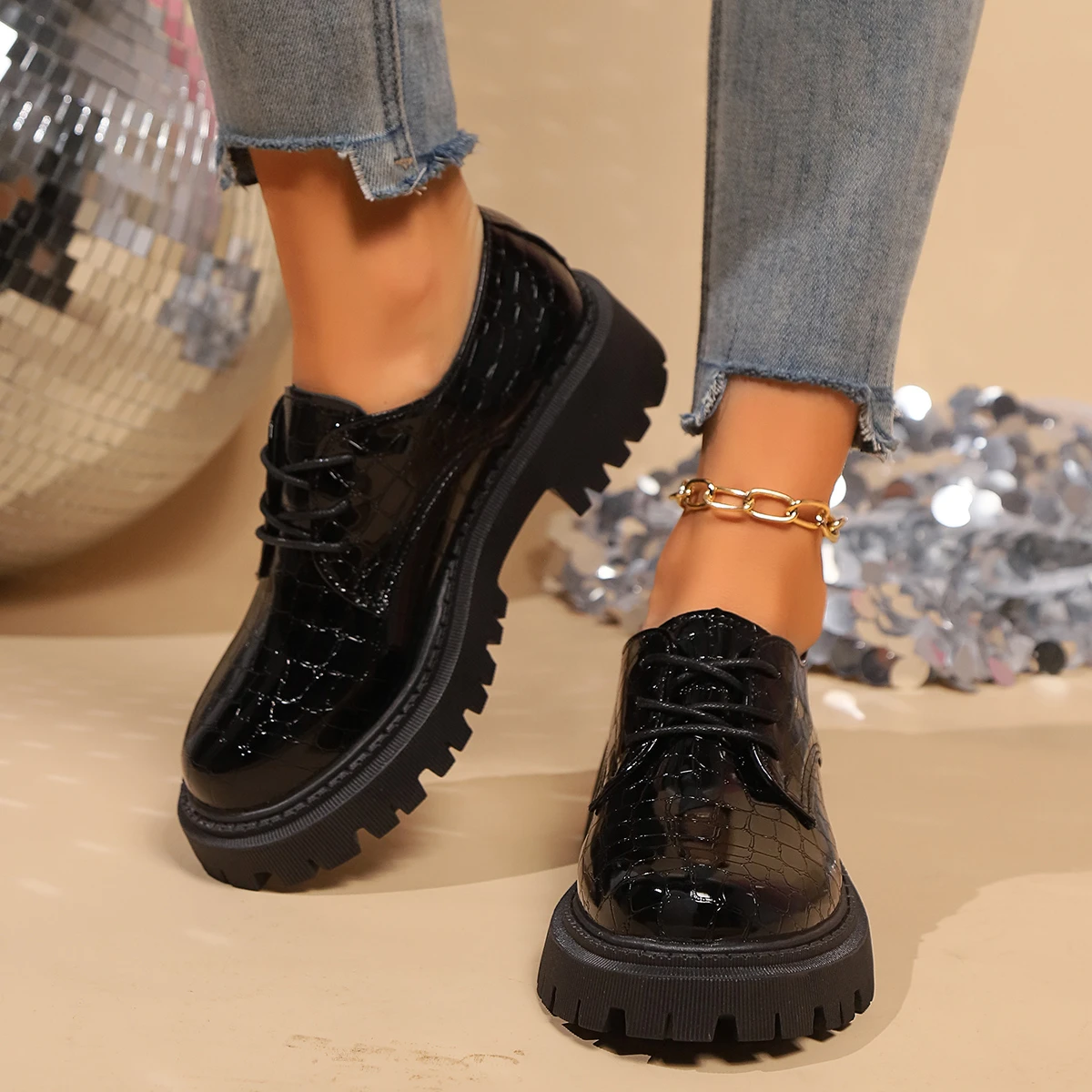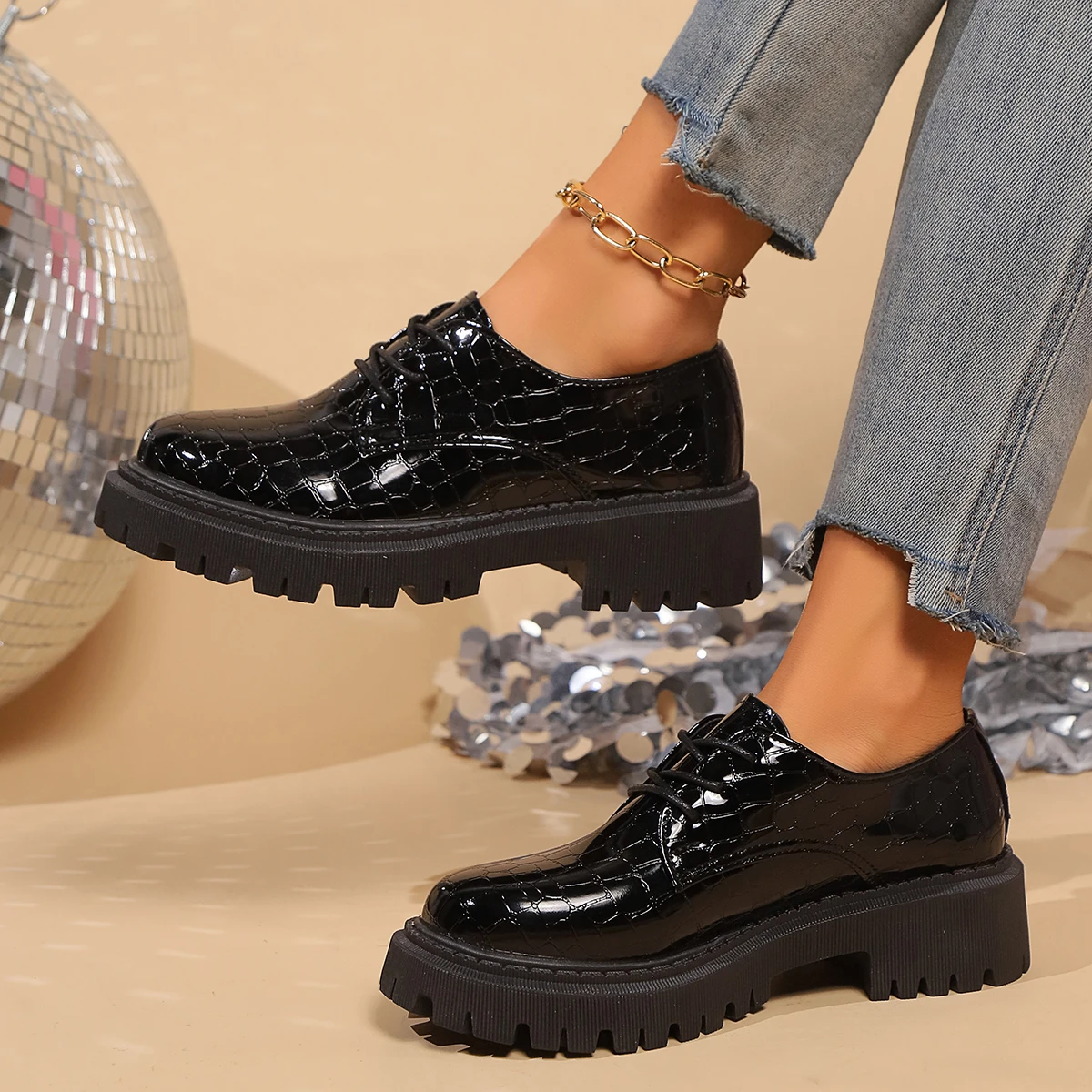 2024 Women Spring New Black Platform Flats Shoes Women Loafers Slip on Boat Shoes Designer Casual Leather Oxfords