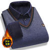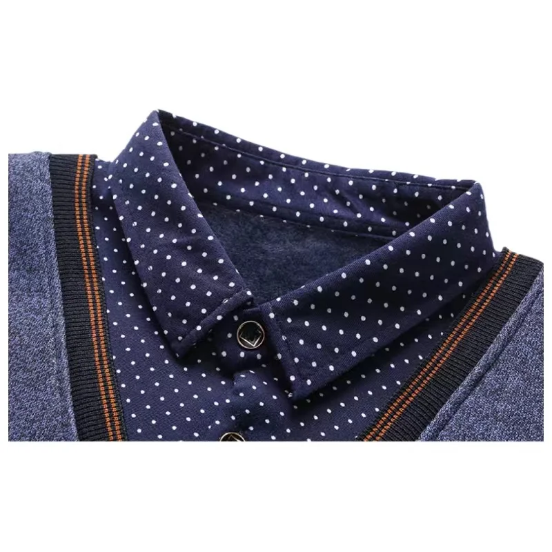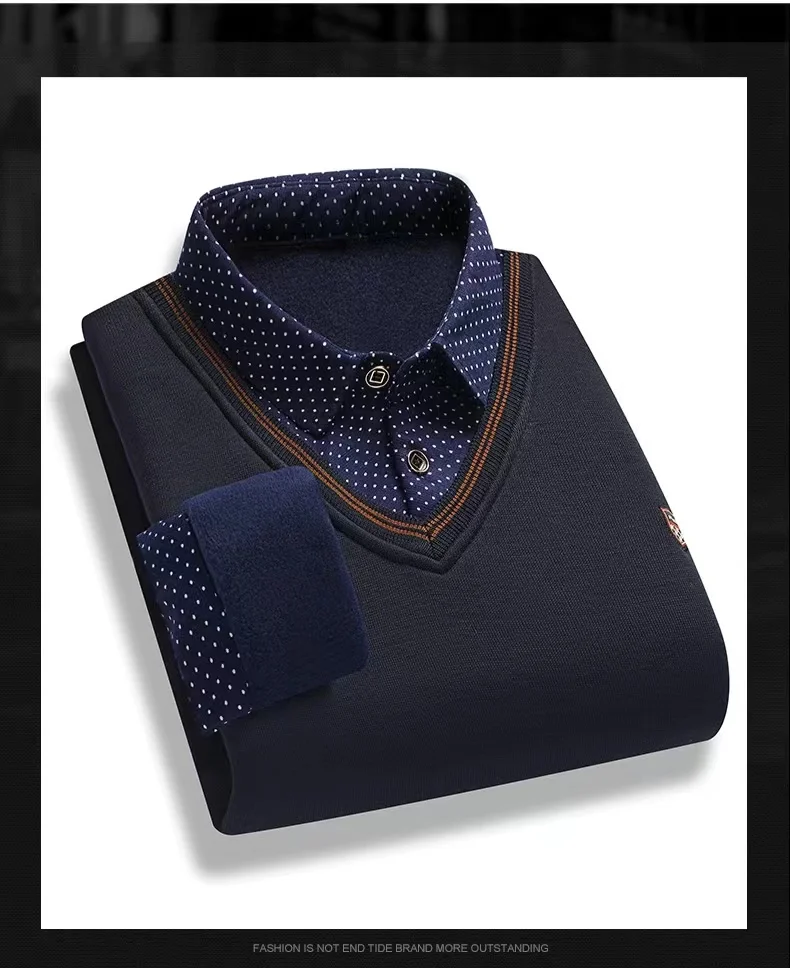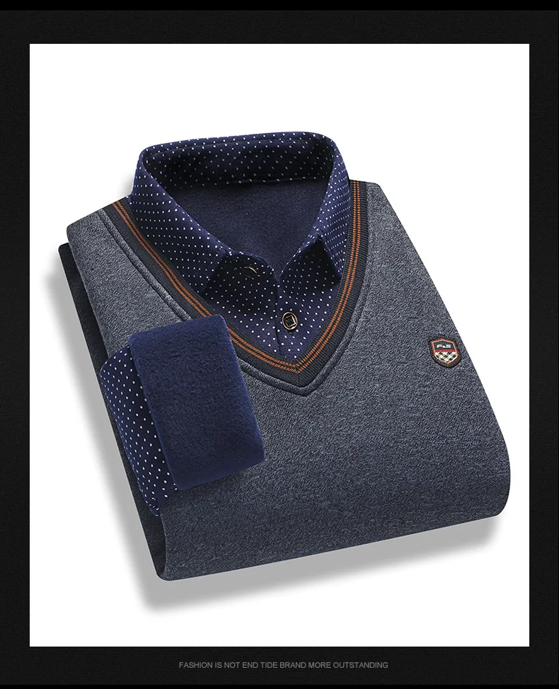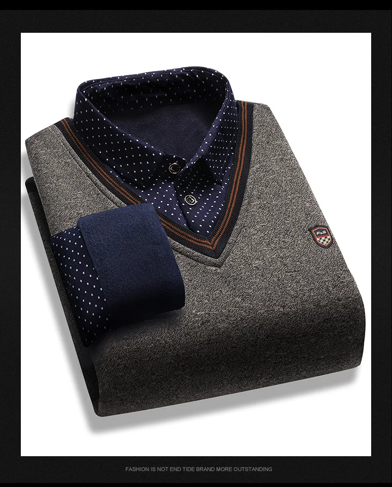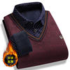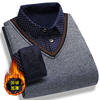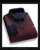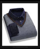 2025 Autumn/Winter Men’s Fake Two Piece Knitted Sweater with Plush Thick Embroidered Polo Collar Pullover for Warm Top