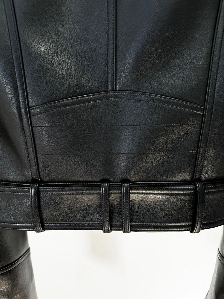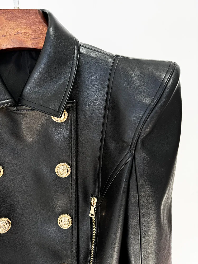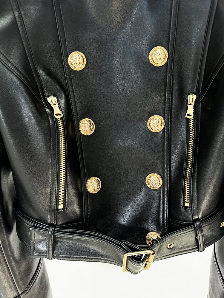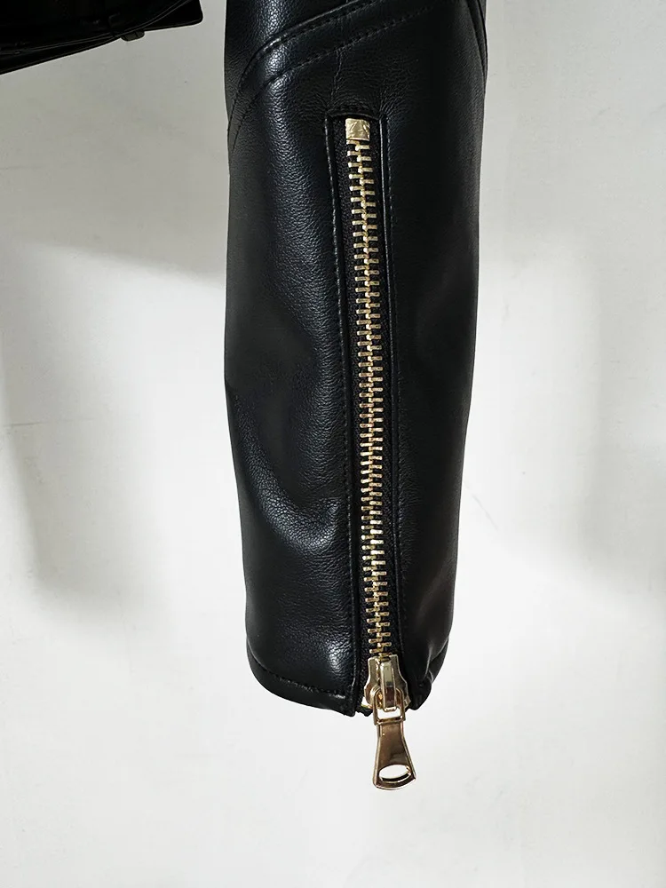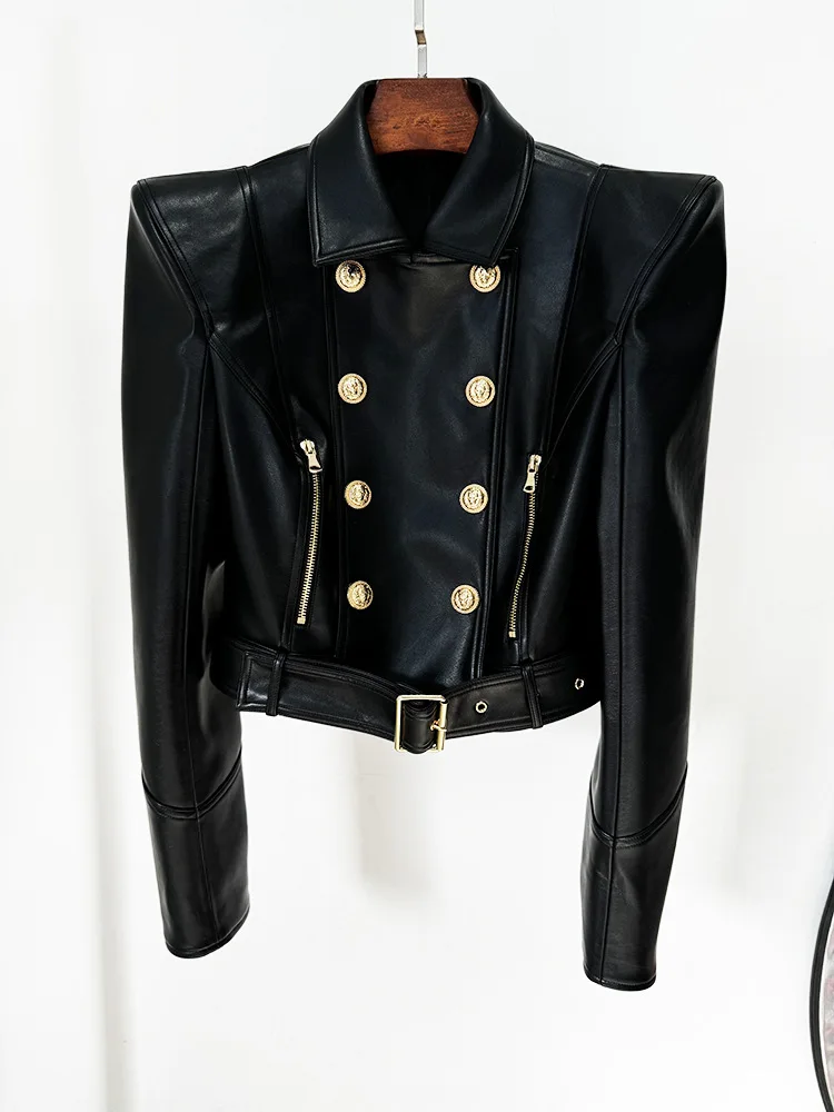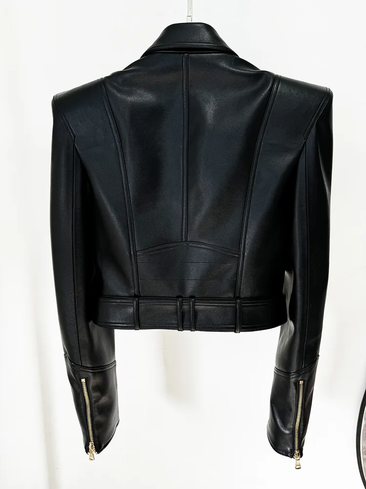 2025 Fashion Personalized Double breasted Short Motorcycle Leather Jacket