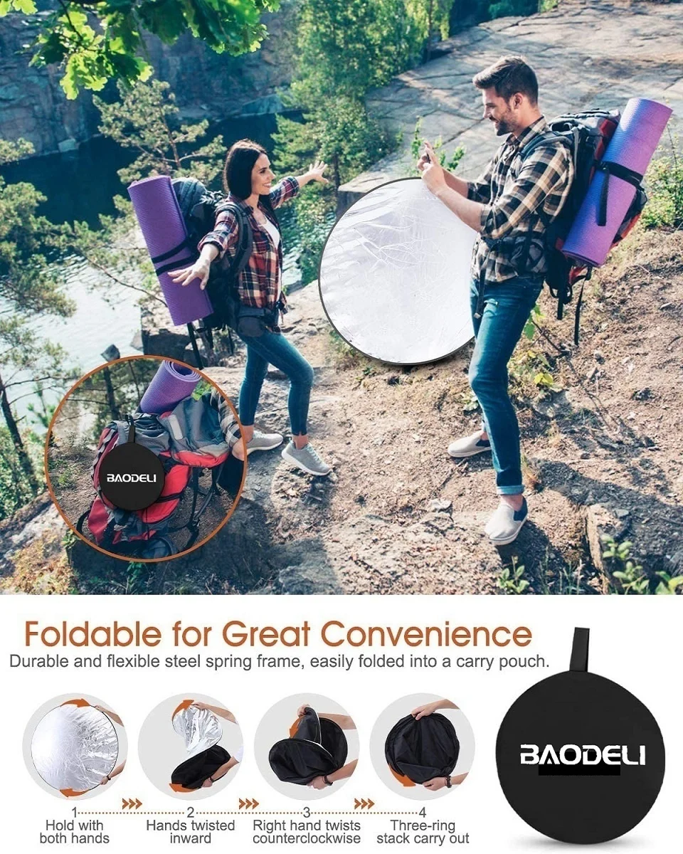 العاكس مع خمسة أسطح عاكسة مختلفة يمكن استخدامها لملء ، تعكس ، منتشر ، امتصاص أو تليين الضوء.