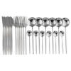 24 قطعة الأسود الغربية أواني الطعام مجموعة الفولاذ المقاوم للصدأ مجموعة أدوات المائدة شوكة ملعقة سكين مجموعة أدوات المائدة طقم ملاعق الفضيات مجموعة