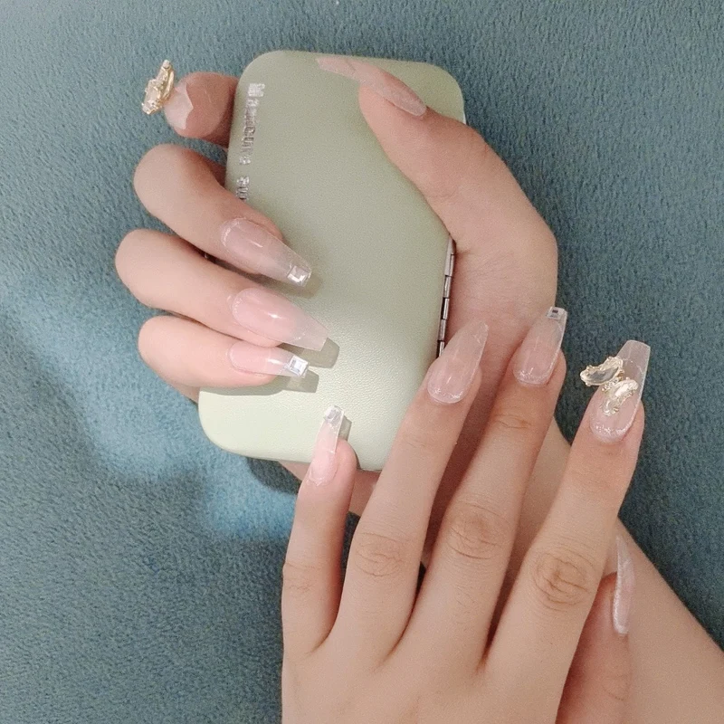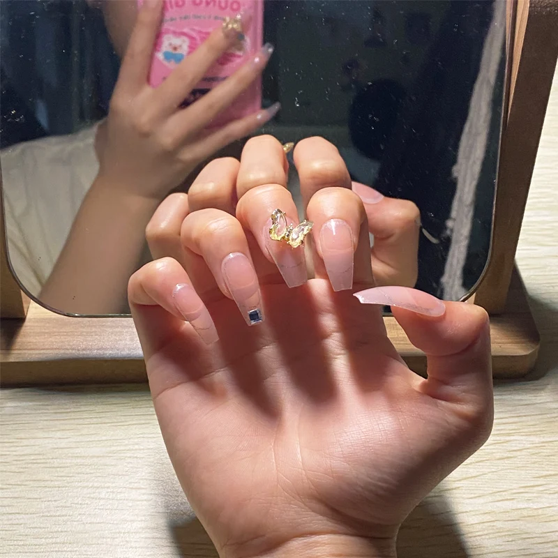 24 قطعة فراشة زينت الأظافر كاذبة للإزالة فقرة طويلة موضة مناكير الصحافة على الأظافر نصائح غطاء كامل الاإكريليك للفتيات