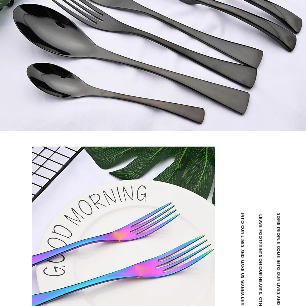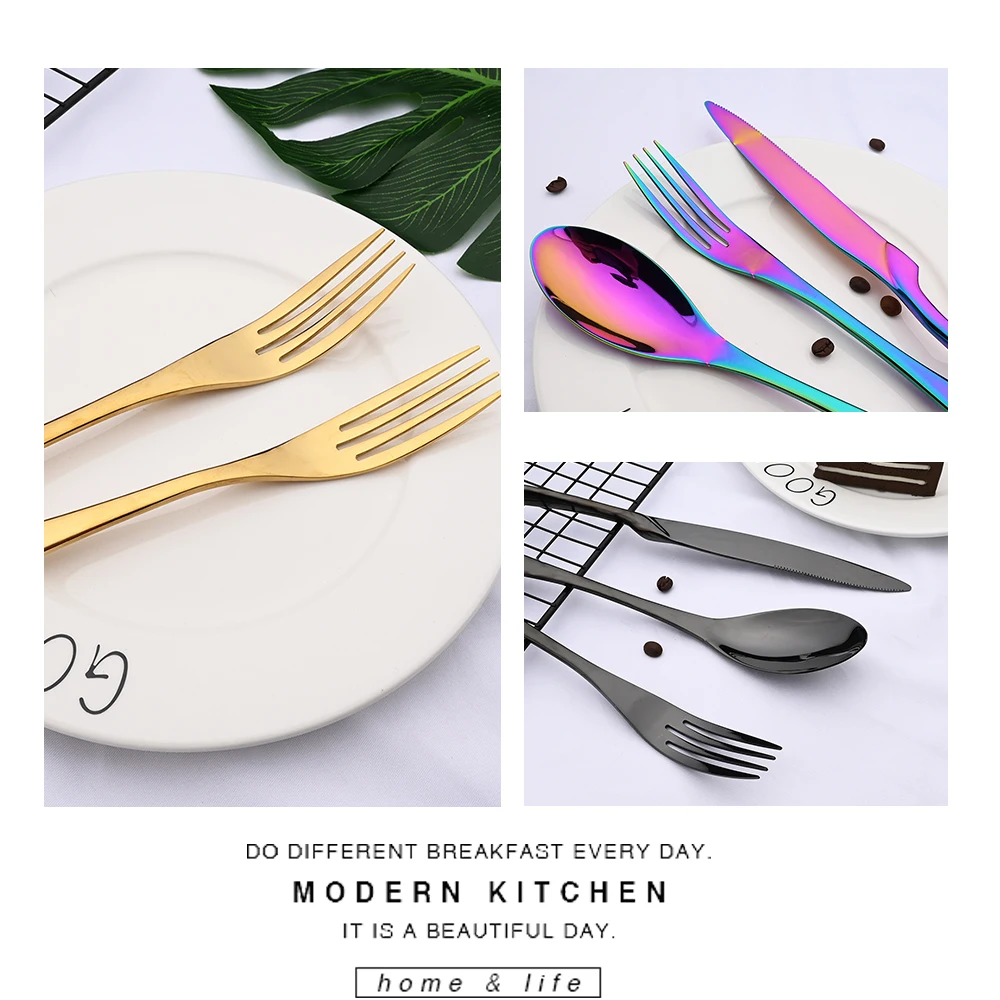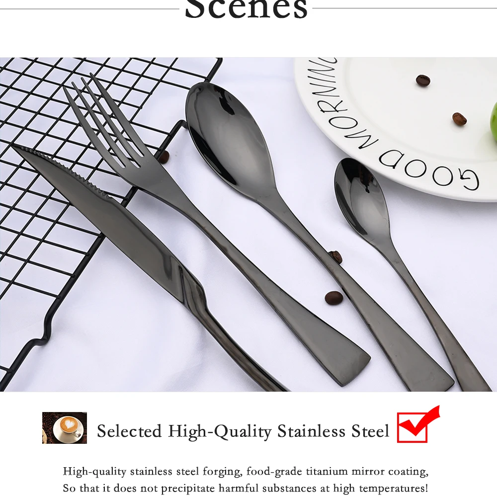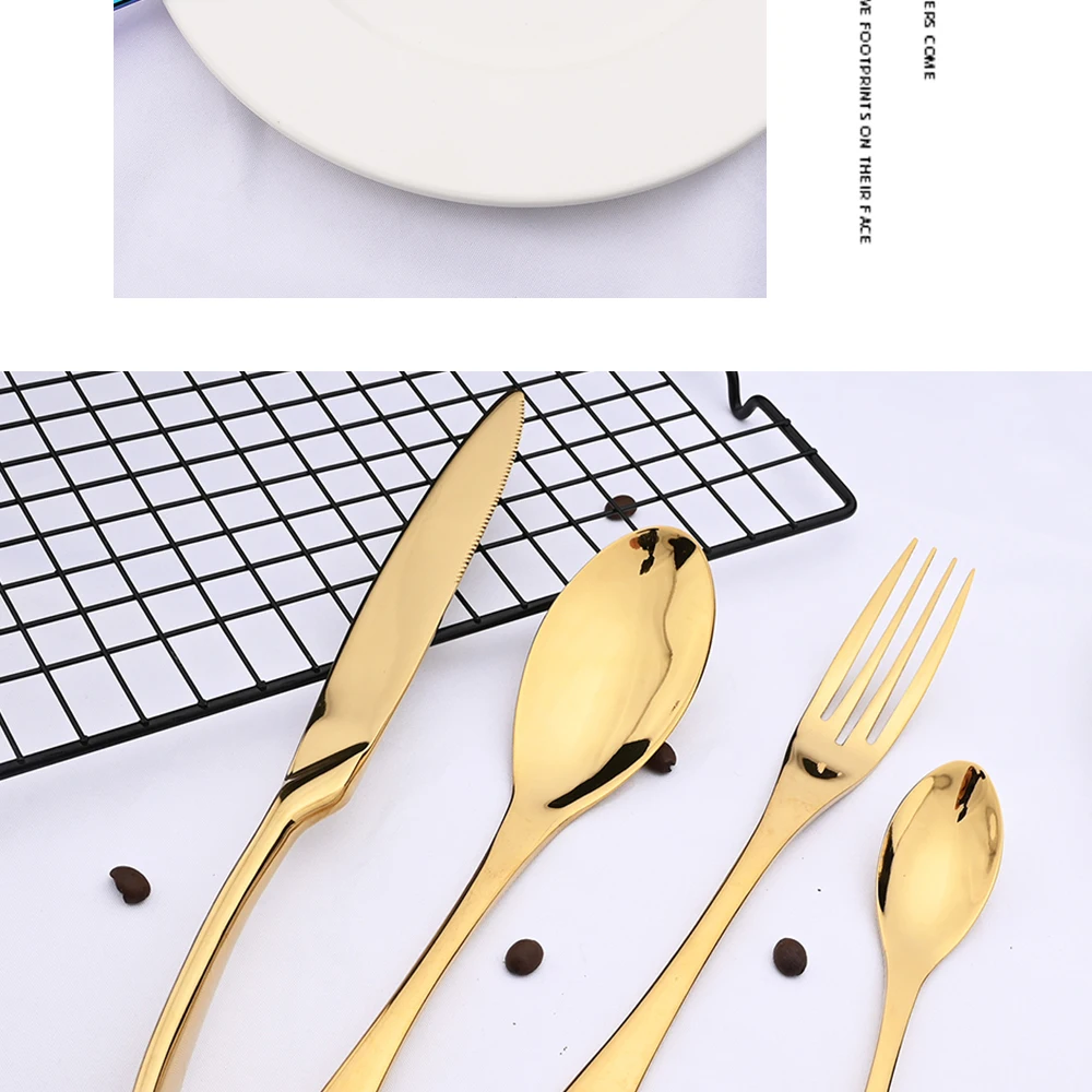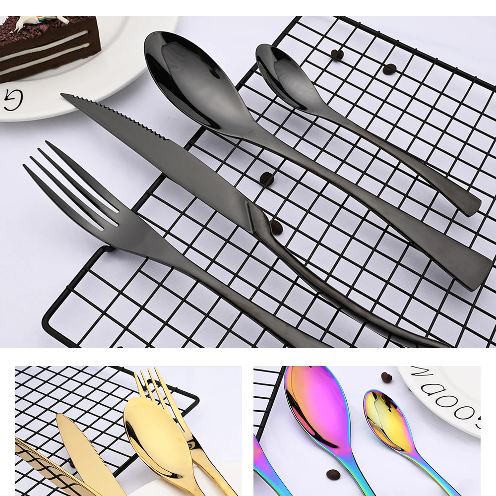 24 قطعة 18/10 الفولاذ المقاوم للصدأ طقم ملاعق الذهب الأسود أواني الطعام سكين لحوم شوكة ملعقة صغيرة أدوات المائدة الغذاء أدوات المائدة دروبشيب