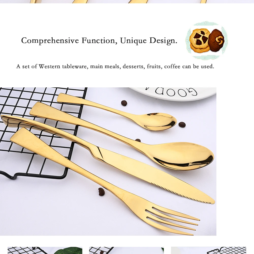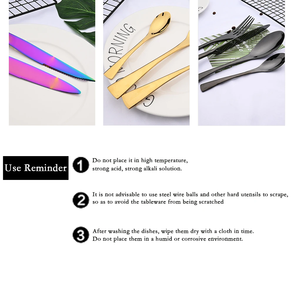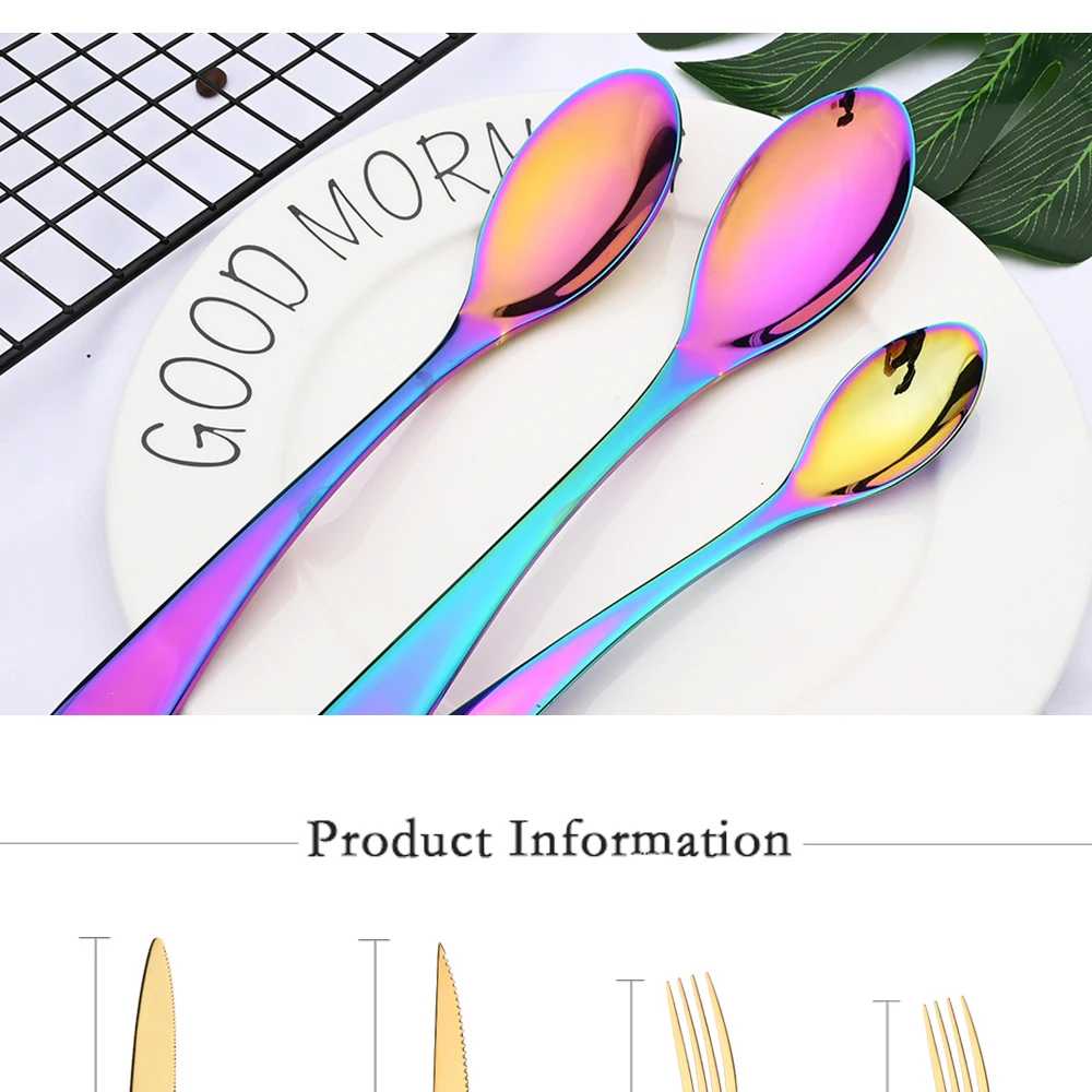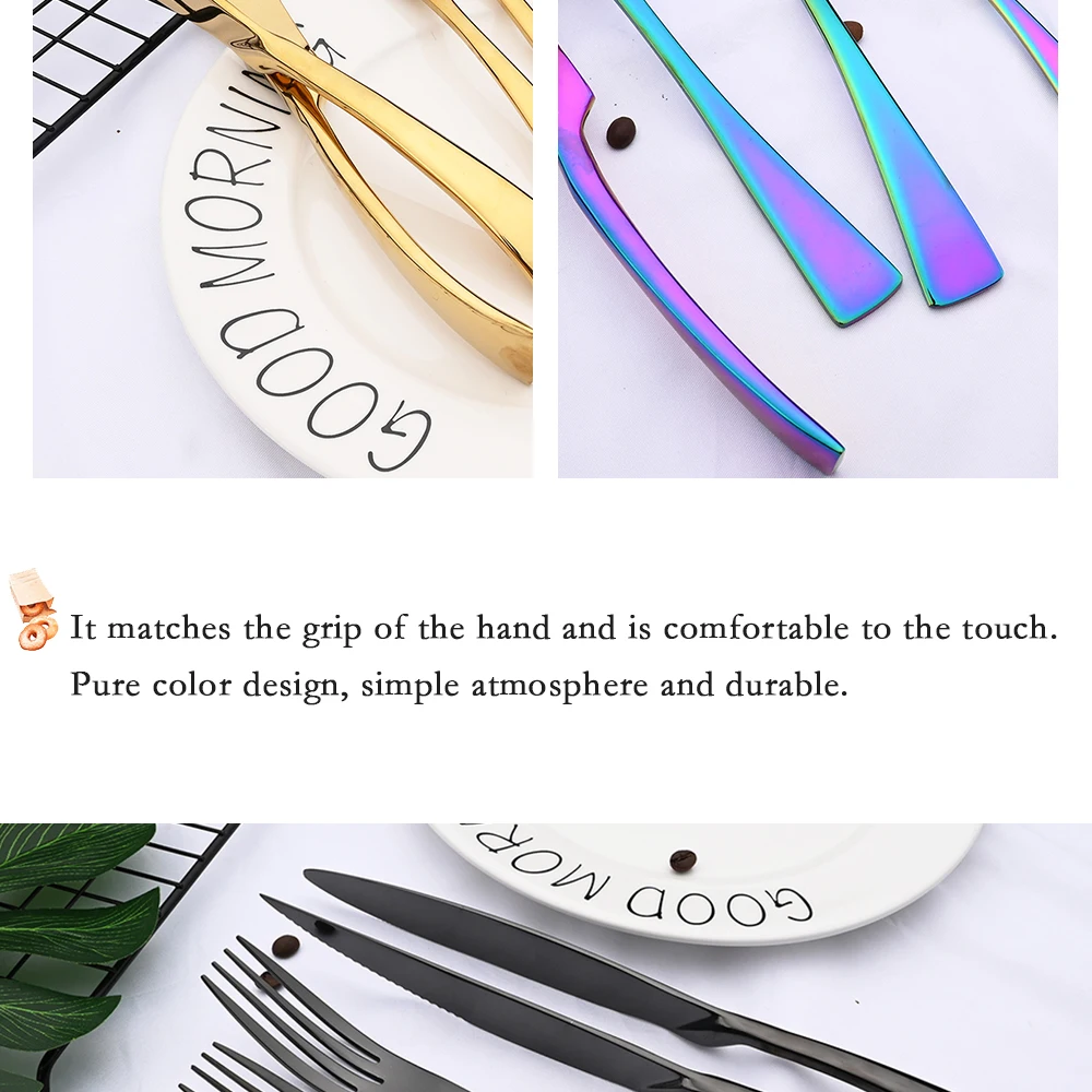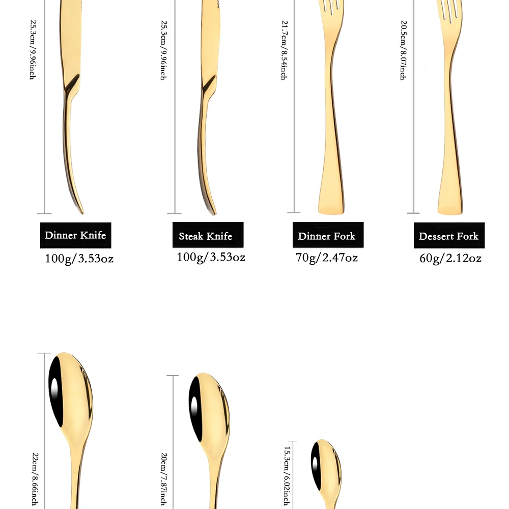 24 قطعة 18/10 الفولاذ المقاوم للصدأ طقم ملاعق الذهب الأسود أواني الطعام سكين لحوم شوكة ملعقة صغيرة أدوات المائدة الغذاء أدوات المائدة دروبشيب