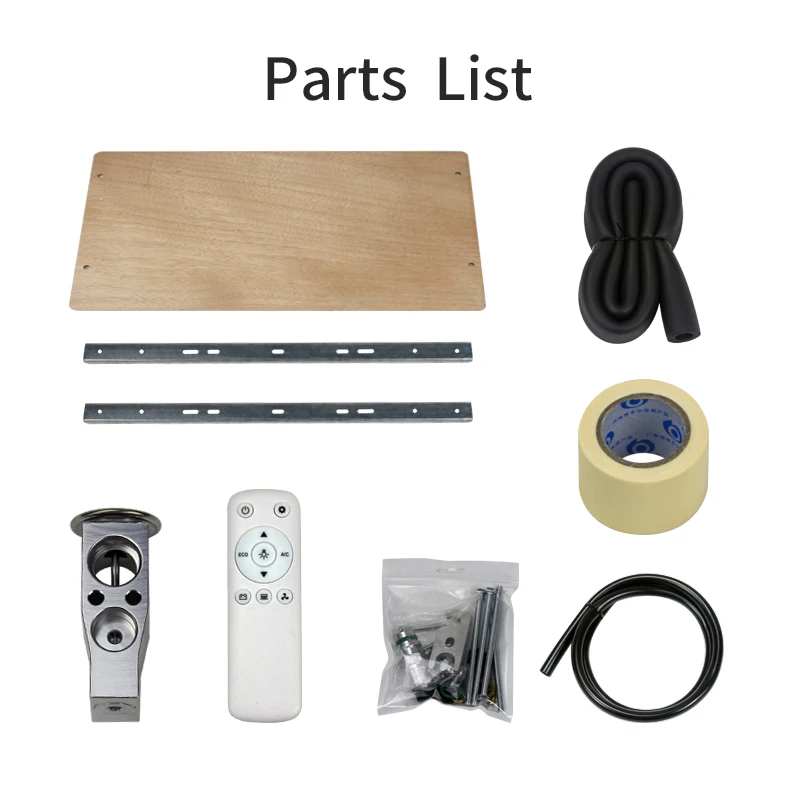1، هذا المنتج هو الوحدة الداخلية لمكيف الهواء في مواقف السيارات (مجموعة المبخر)، ويجب توصيله وتركيبه مع الضاغط الكهربائي، ومجموعة المكثف، والأنابيب وغيرها من ملحقات تكييف الهواء من أجل التبريد.