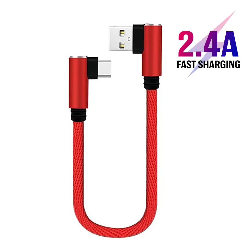 25 سنتيمتر USB إلى نوع C كابل شحن قصير الكوع 90 درجة USB C المصغّر USB كابل 2A شحن سريع