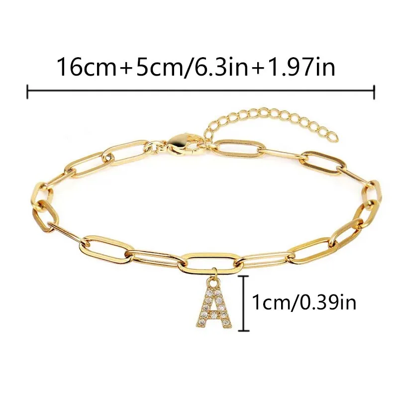 26 Letters Rhinestone Bracelet Gold Color Alphabet Pendant Couple Metal Bracelet Personalized Charm Jewelry Accessories pulseras