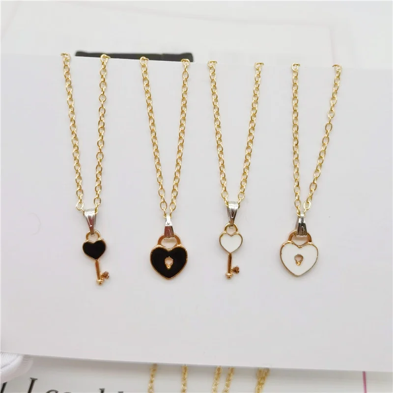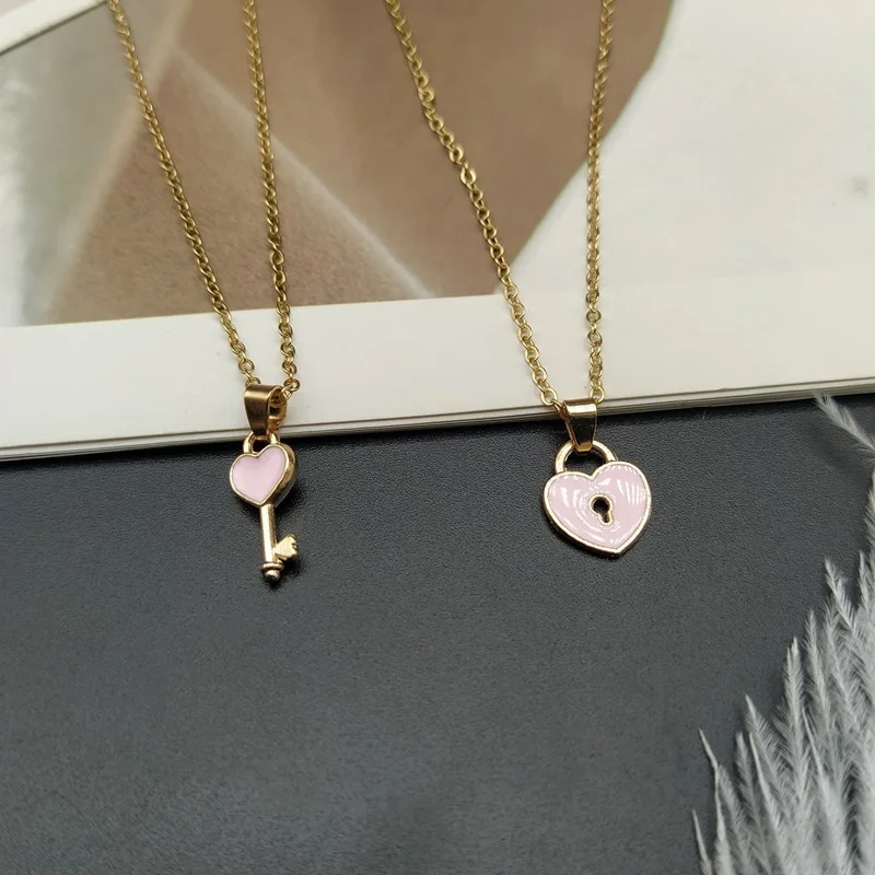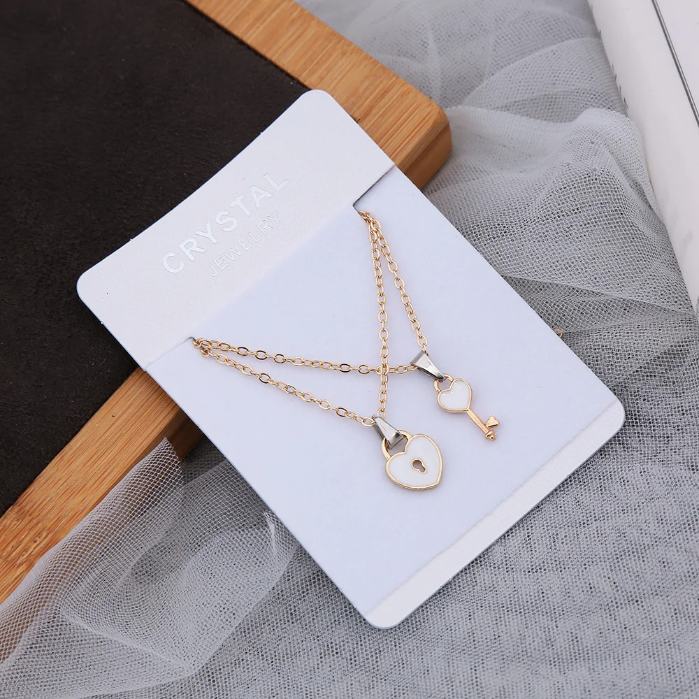 2Pcs/Set Heart Key Love Couples Necklace Pendant Necklaces for Women Men Fashion Friendship Valentine’s Day Jewelry Gifts