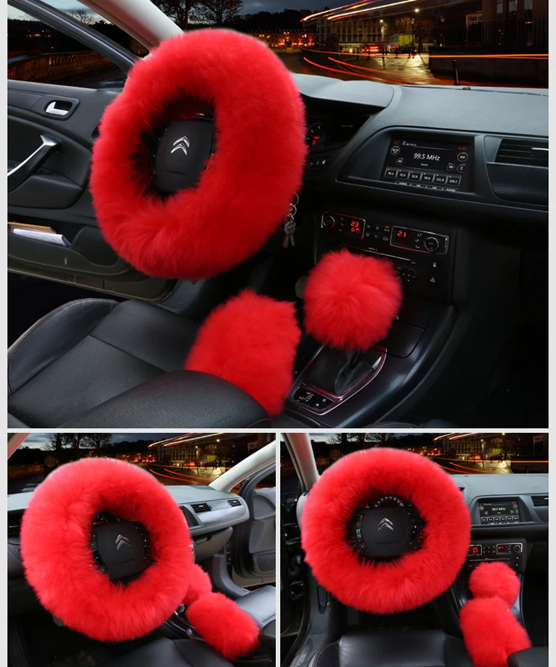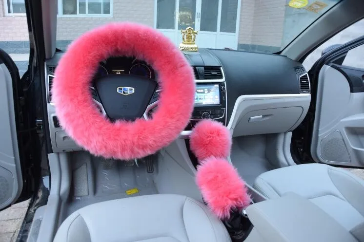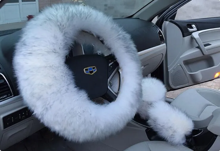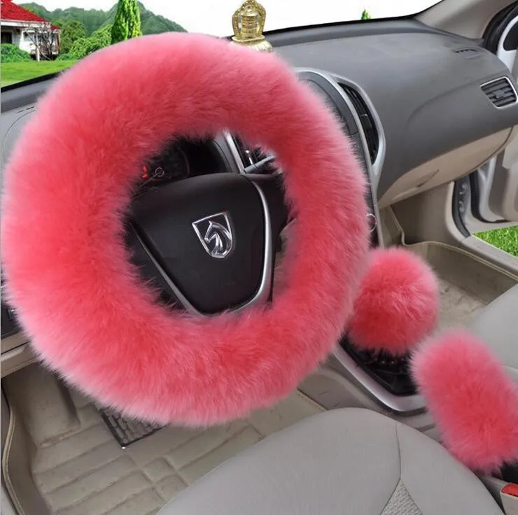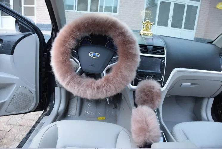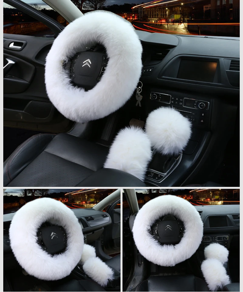 3 قطعة/المجموعة النقي الصوف عجلة توجيه سيارة يغطي مجموعة غطاء على عجلة القيادة طويلة الصوف أفخم الصوف الشتاء سيارة التبعي