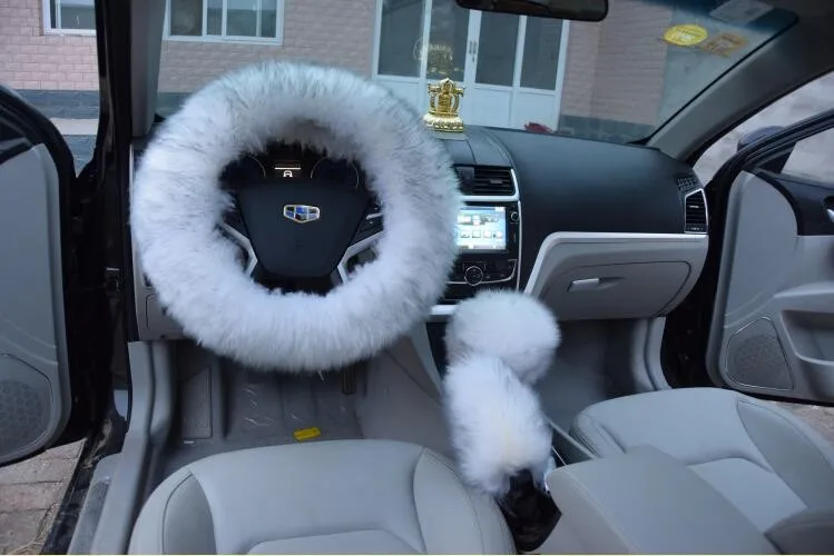 3 قطعة/المجموعة النقي الصوف عجلة توجيه سيارة يغطي مجموعة غطاء على عجلة القيادة طويلة الصوف أفخم الصوف الشتاء سيارة التبعي