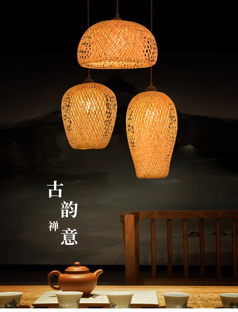 3 قطعة مجموعة مزيج Pendant بها بنفسك قلادة مصباح الخيزران ضوء الروطان اليدوية ديكور المنزل الفن الثريا عاكس الضوء مطابقة مجانية