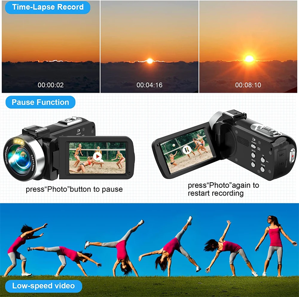 3 "شاشة تدوير 2K 1080P تسجيل الفيديو كاميرات يوتيوب لايف ستريم كاميرا للرؤية الليلية المحمولة الأشعة تحت الحمراء كاميرا بطيئة الحركة
