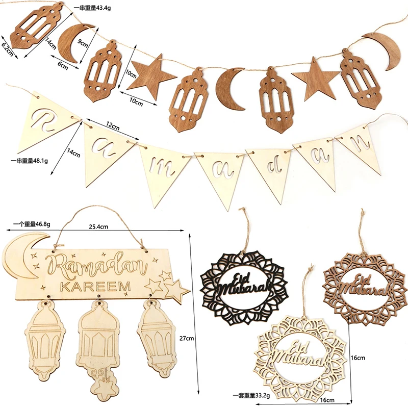 3 قطعة قلادة رمضان تعطي الحبال القمر فانوس على شكل نجمة خشبية معلقة رقاقة الحلي عيد مبارك رمضان كريم الديكور هدايا المنزل