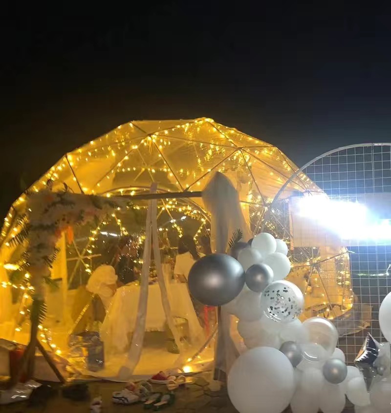 لا يمكن استخدام خيمة السماء المرصعة بالنجم الشفافة هذه لأنشطة مراقبة النجوم فحسب ، بل يمكن استخدامها أيضًا لحفلات الزفاف في الهواء الطلق ، والعشاء في الهواء الطلق ، والحفلات الموسيقية في الهواء الطلق وغيرها من المناسبات.