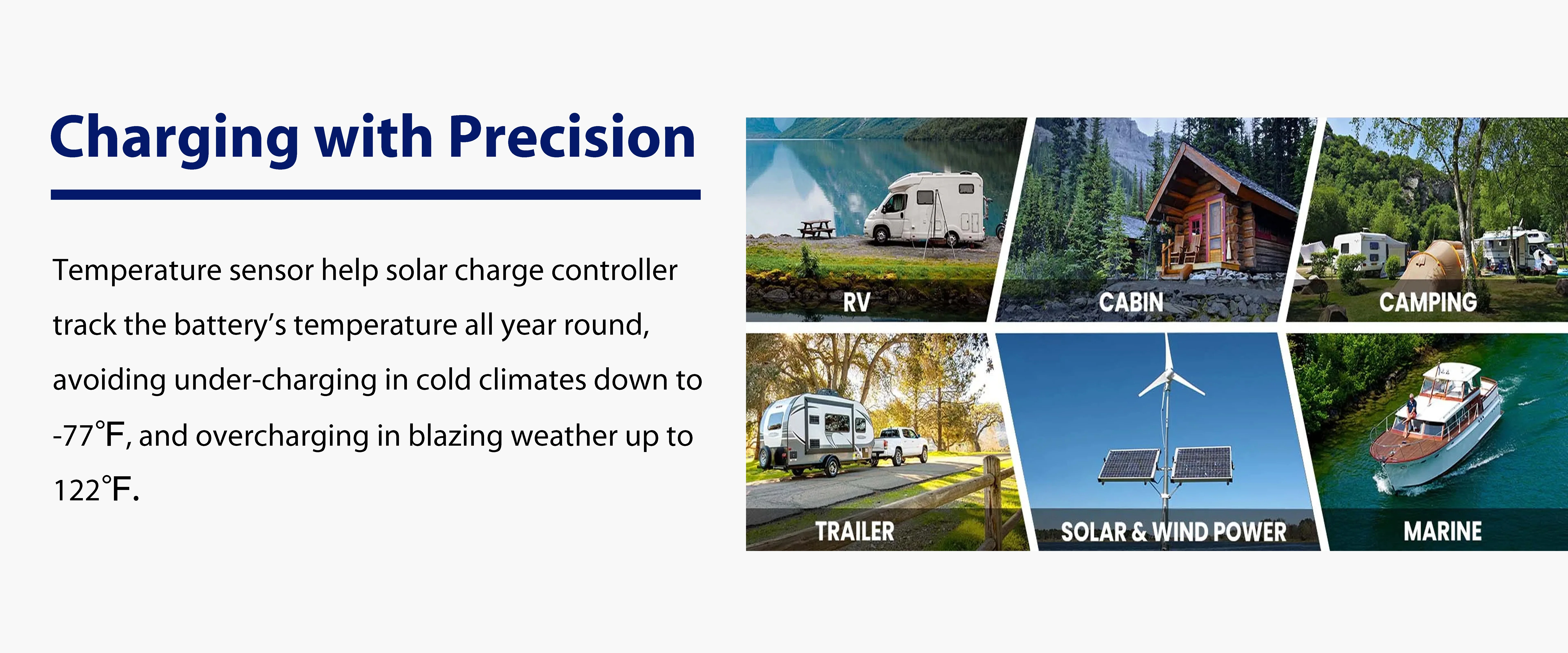 Support the lead-acid and lithium batteries; voltage parameters can be set on the controller