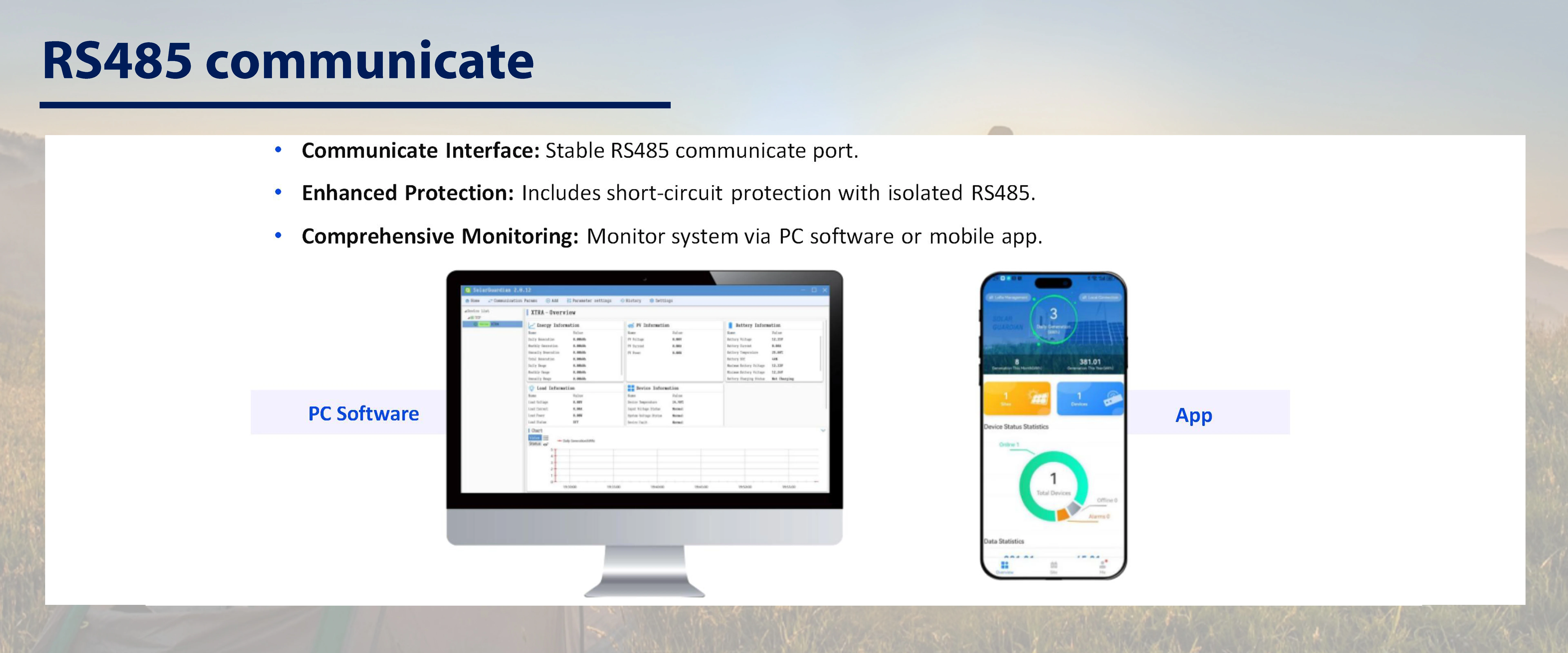 MT50 is a new generation of remote meters designed based on the latest controller communication protocol and voltage technical standards. The MT52 remote meter, using with the controllers designed with RS485 communication, can monitor the controller’s real-time working status and program the parameters.