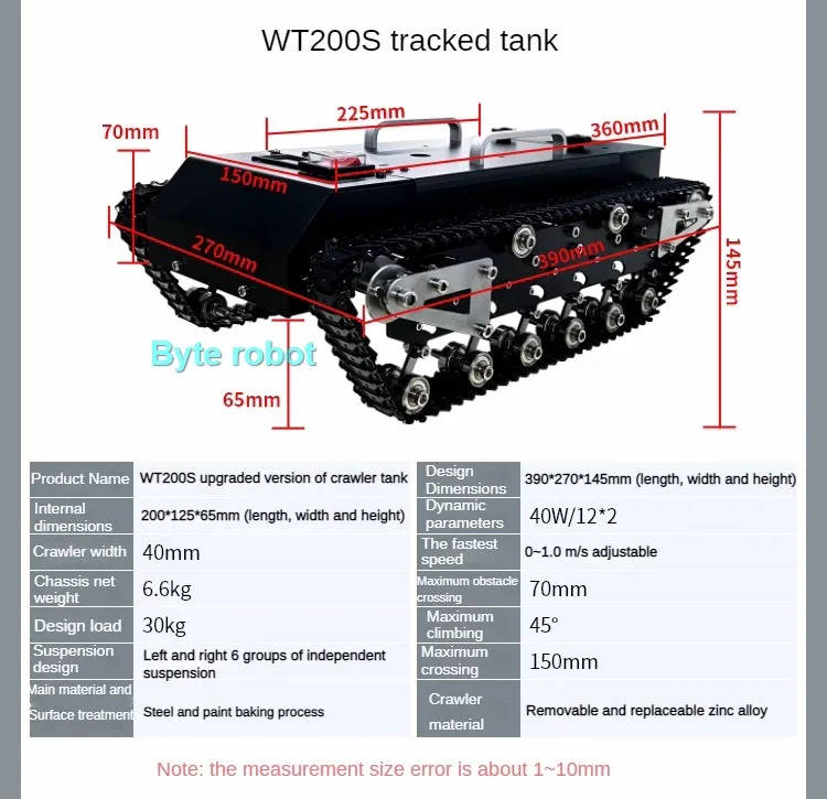 WT-200s Upgraded RC Tank Chassis Metal Track Tank Load 30KG Shock Absorber (Without Controller)