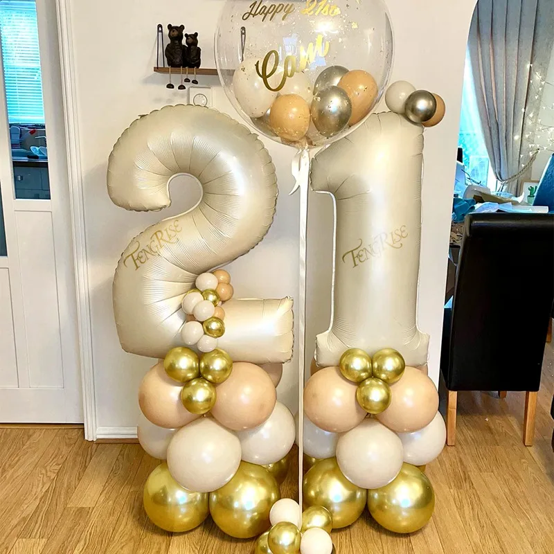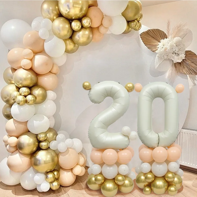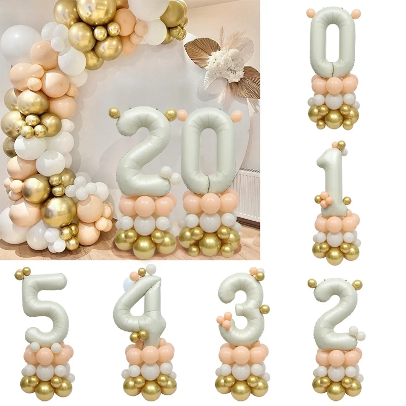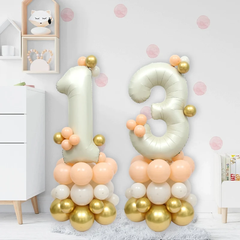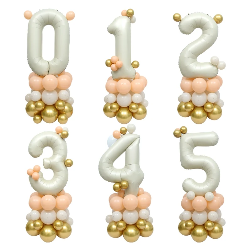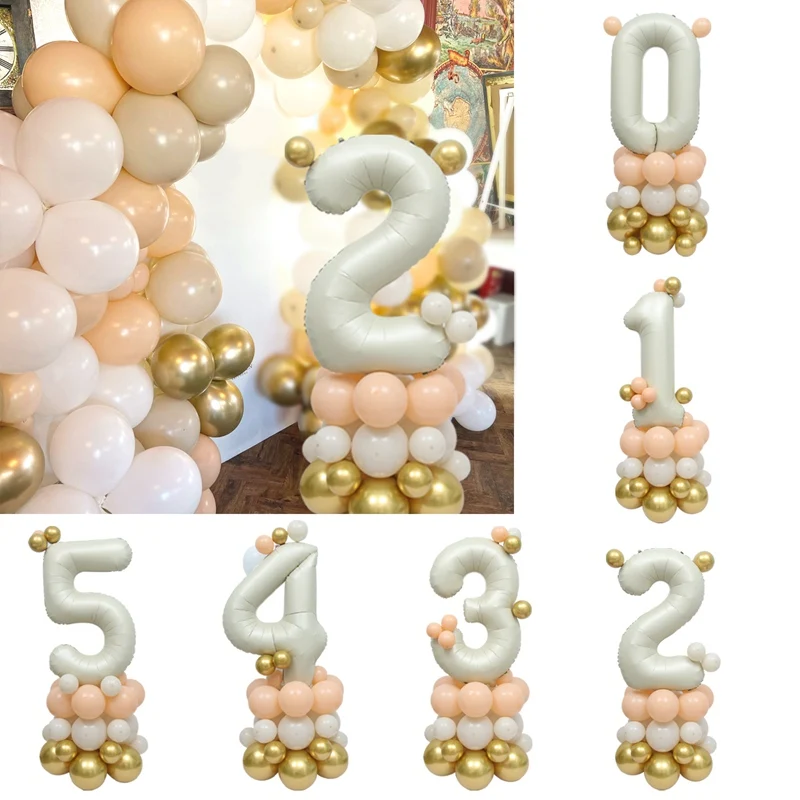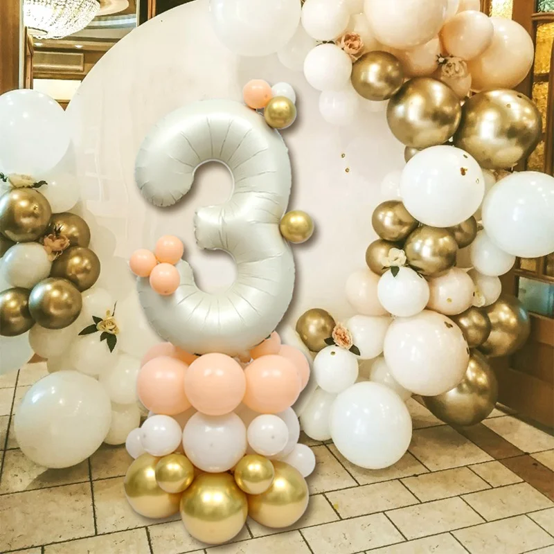 33 قطعة أبيض كريم كبير أرقام عدد الهيليوم احباط بالونات الزفاف عيد ميلاد سعيد ديكور حفلات الاطفال استحمام الطفل أرقام Globos