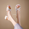 35-39 جديد الصيف عالية الكعب المرأة جولة تو المصارع الصنادل جوفاء Slingback مشبك حزام فستان الحفلات أحذية الكعوب النساء