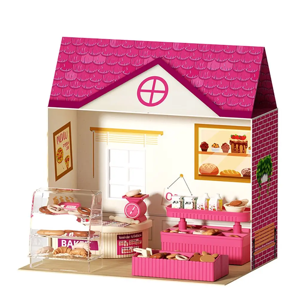 3D Cardboard Puzzle Dollhouse 1:12 Bedroom Bathroom Mini Bakery Store Model Play House Kitchen Toy Micro Furniture For Girl Gift